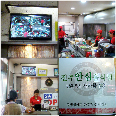 주방 등 식당 실내의 주요 곳에 CCTV 카메라를 설치하고 실내에 스크린을 설치하여