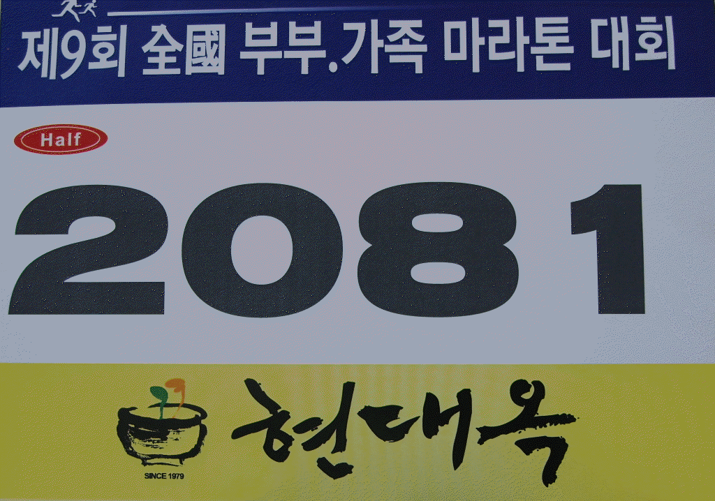 보면 '현대옥'인쇄된 배번호판을 차고 있는 마라토너를 보실 수 있습니다. 배번호판 참여는