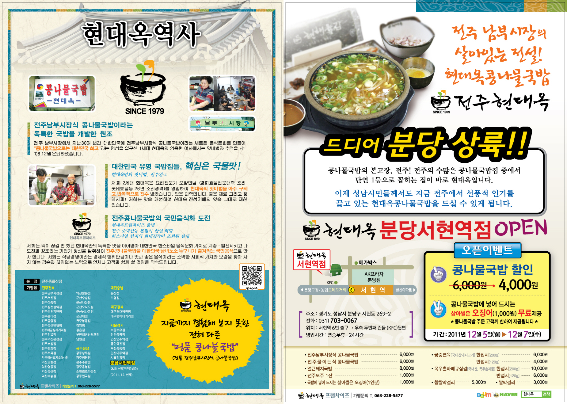 서울경기지역에의 본격적인 현대옥 진출을 염두에 둔 실험적 매장입니다.새로운 메뉴,메뉴가격,시스템등