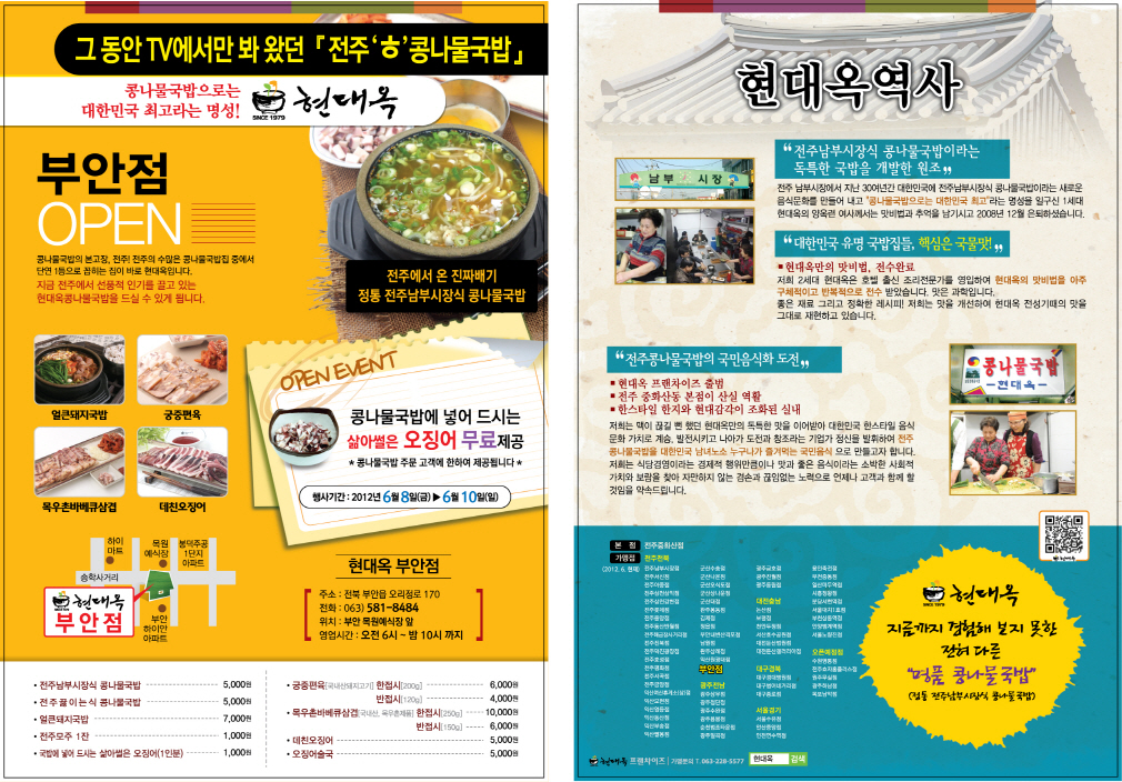 그 동안 TV에서만 봐 왔던 "전주 'ㅎ'콩나물국밥"의 현대옥을 이제 부안에서도 드실 수 있게 됐습니다