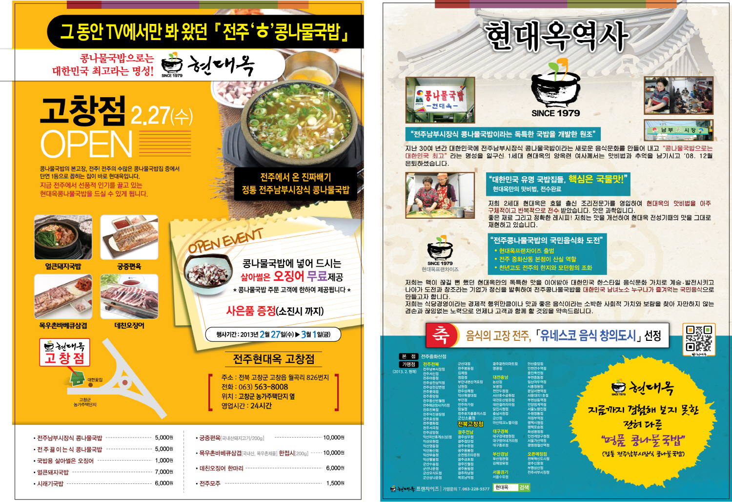선운사와 청보리밭의 고장 고창에서도 이제 현대옥콩나물국밥을 드실 수 있게 되었습니다. 오늘 성황리에 오픈하였