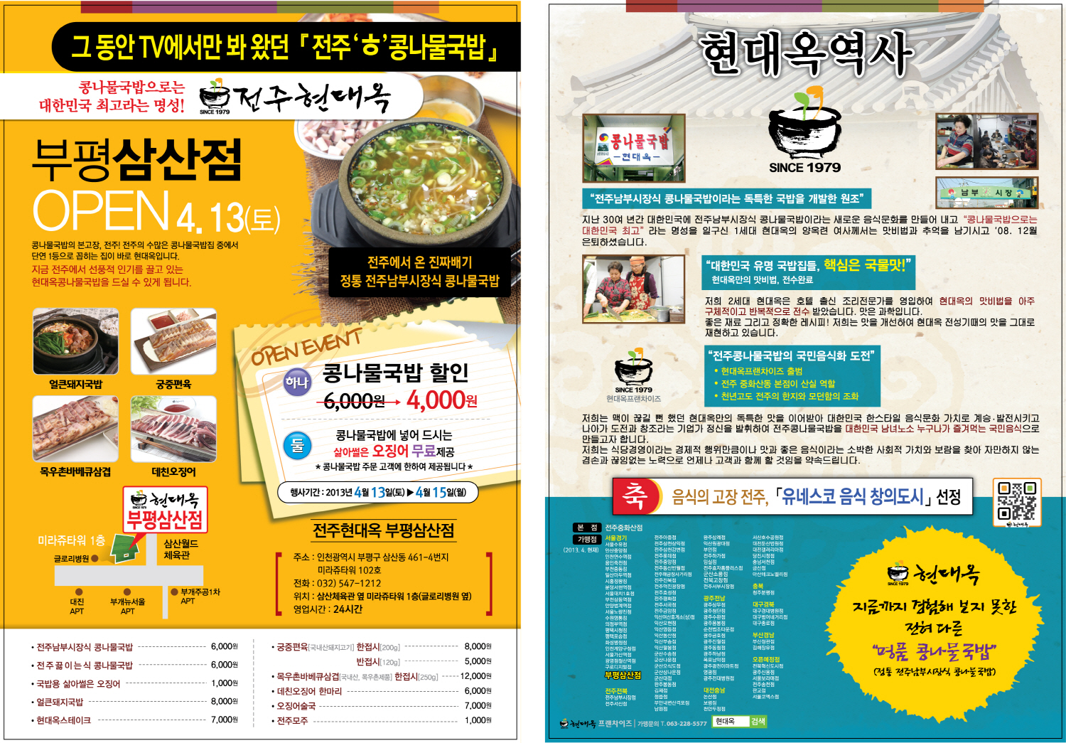 오늘자로 인천광역시 부평동에 위치한 현대옥 부평삼산점이 오픈하였습니다.