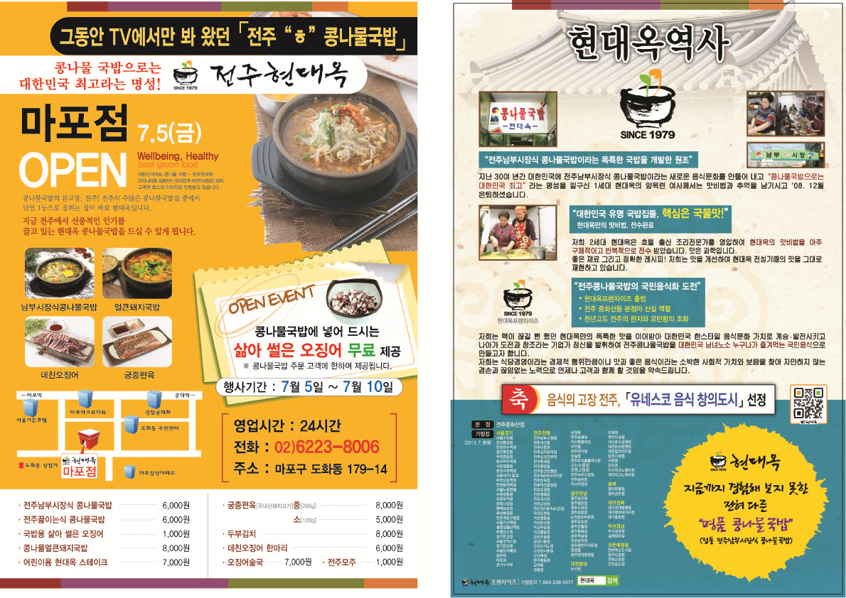 그제 7월5일자에 서울 마포구에 소재한 현대옥 마포점이 오픈하였습니다. 마포점의 사장님께서는 석 달 전에