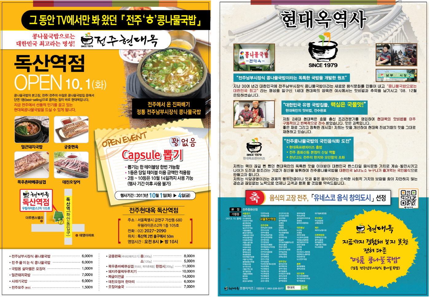 ##독산역점 오픈전단지 (앞/뒷면, 클릭하면 확대)