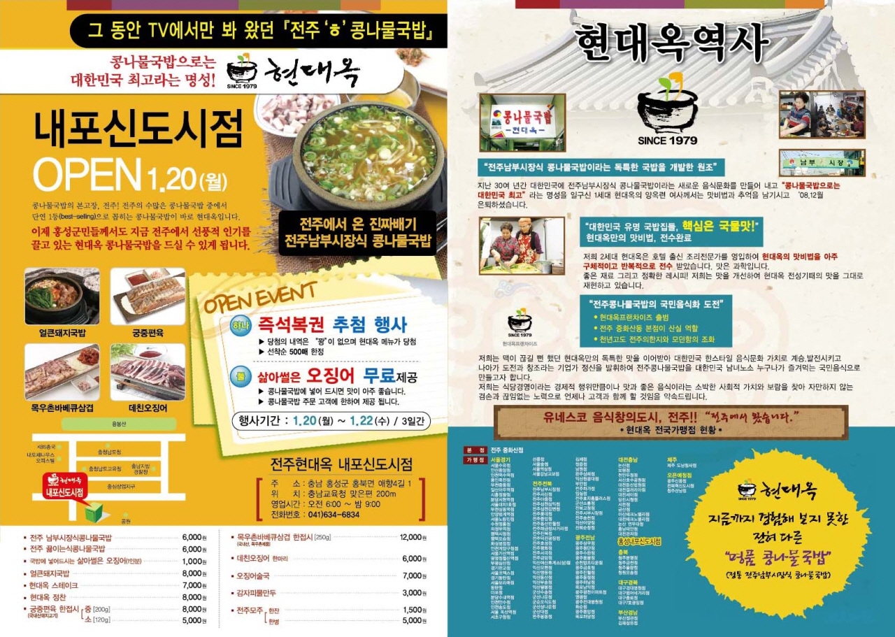 오늘자로 충남도청이 소재한 홍성의 내포신도시에 현대옥이 오픈하였습니다.내포신도시는 충남도청,충남교육청등
