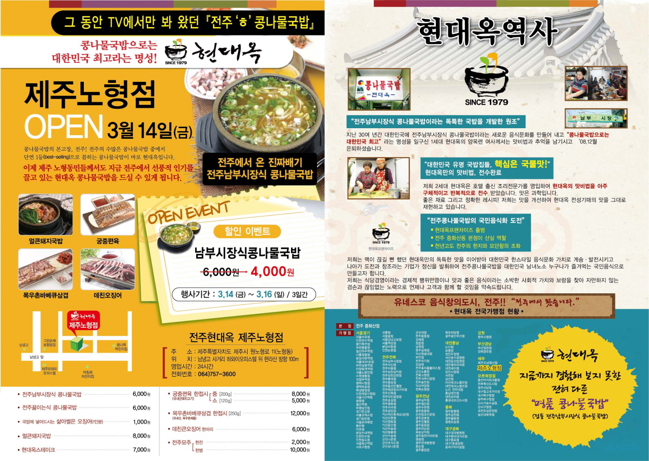 제주도에 드디어 또 하나의 현대옥이 오늘 오픈하였습니다. 그 동안 구제주에서 도남청사점이 외롭게 고군분투 영업해