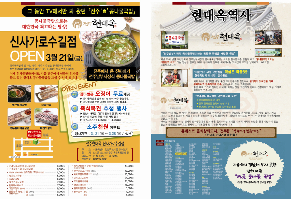 이제 서울 신사동 주민들께서도 가까운 곳에서 현대옥콩나물국밥을 드실 수 있게 되었습니다.오늘자로 강남의