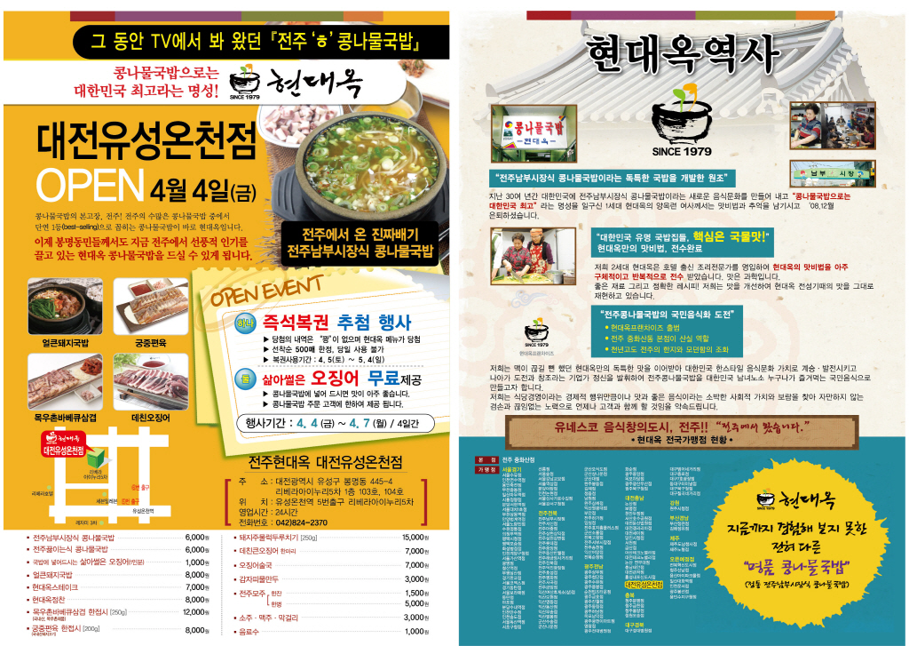 온천과 관광의 도시 대전 유성에 오늘자로 현대옥이 오픈하였습니다.최근 유성은 대형 주상복합과 오피스텔 건축붐이