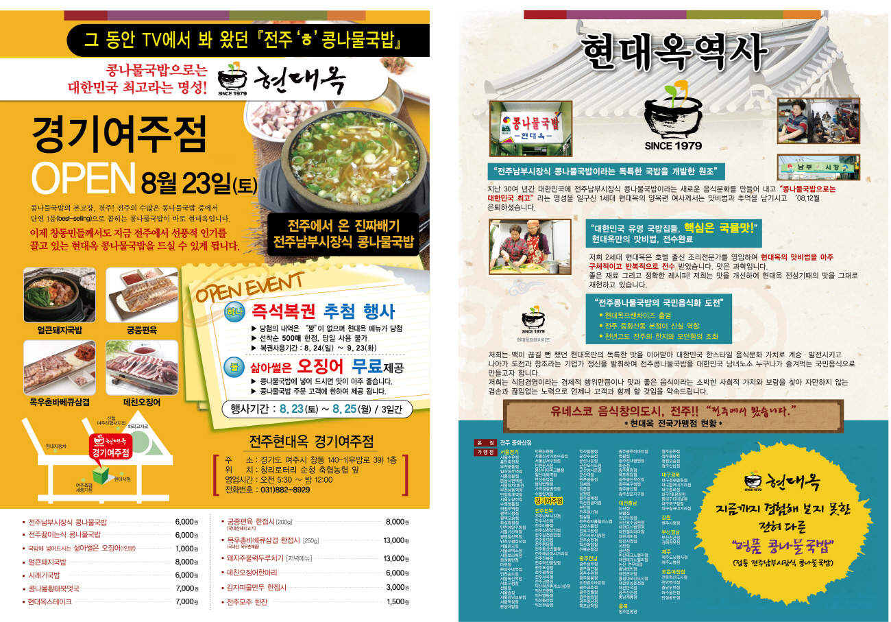께서도 그 동안 인터넷블로그나 TV에서만 봐 왔던 '전주현대옥콩나물국밥'을 가까운 곳에서 만나 실 수 있게 됩니다.