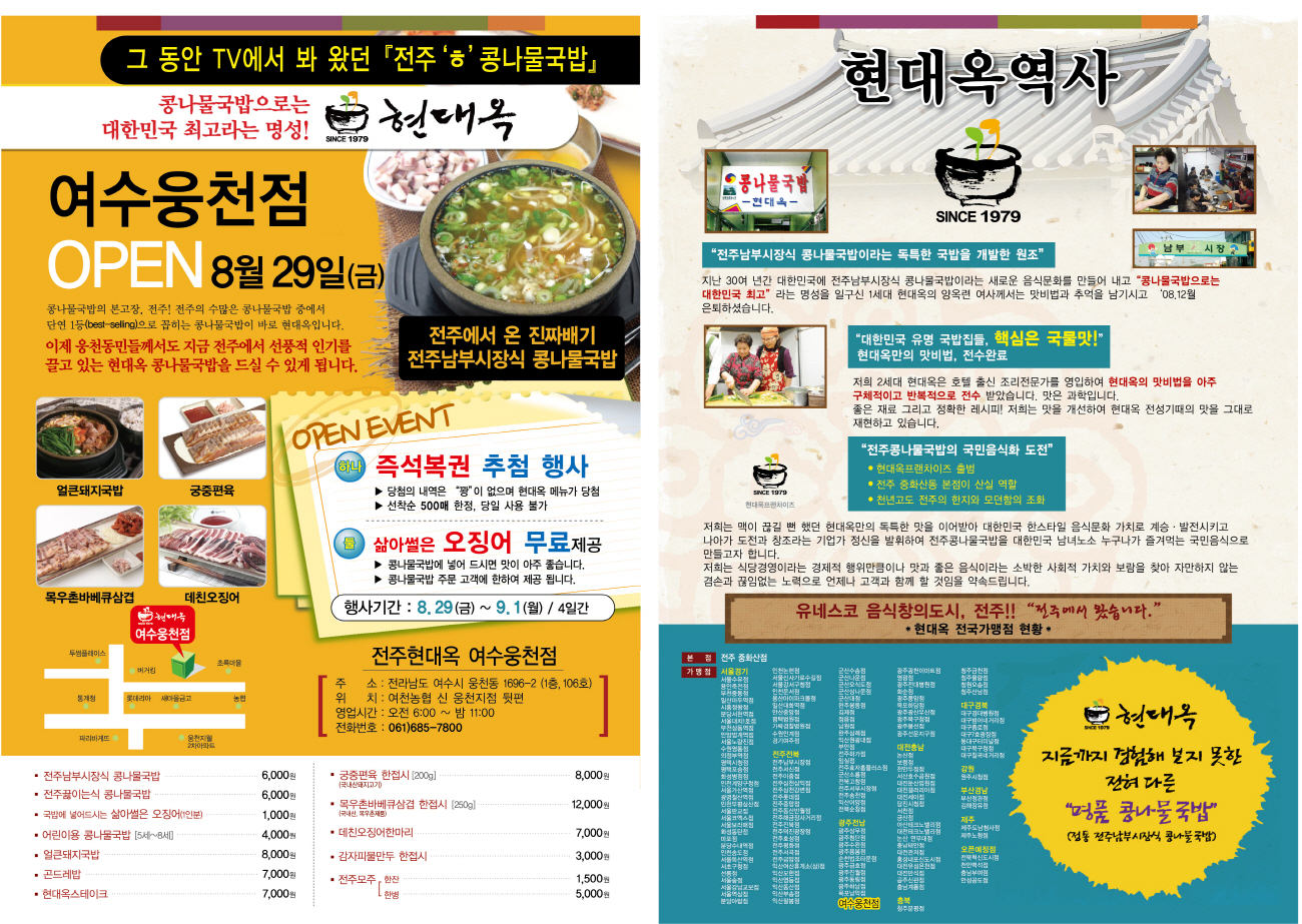 전남 여수시 웅천지구내에 오늘 현대옥이 오픈하였습니다.웅천지구는 새롭게 형성되는 있는 신도시로서 앞으로