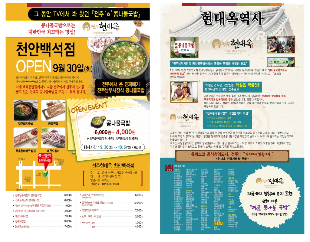천안시에 오늘 또 하나의 현대옥이 오픈하였습니다.그 간 고군분투해 오던 두정점과 함께 시너지 효과를 발휘하면서
