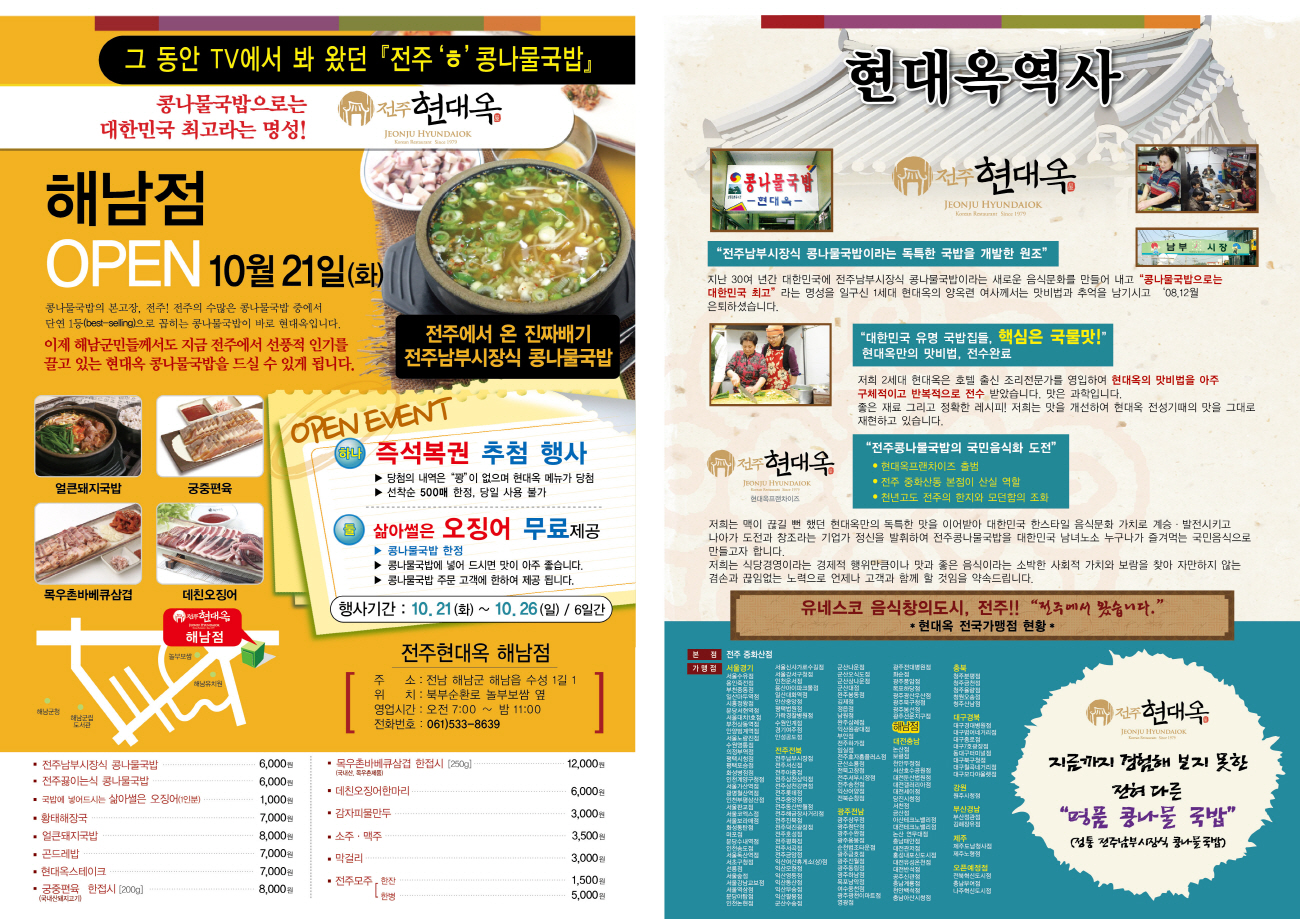 듣던 '전주현대옥 콩나물국밥'을 가까이서 드실 수 있게 됩니다.깨끗한 인테리어와 청결위생으로 해남읍내