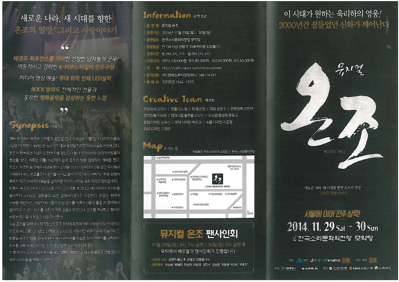 뮤지컬 "온조"는 지난 10월 10일 ~ 11월 2일간 서울 올림픽공원 우리금융아트홀에서 성황리에 공연을 마치고 지방
