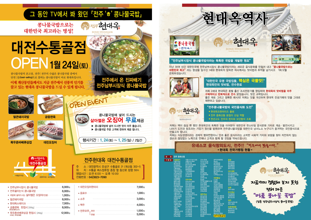 오늘 자로 대전 유성구 수통골에 현대옥이 오픈합니다. 대전 시민들께서 많이 찾으시는 계룡산의 등산로 초입에 위치