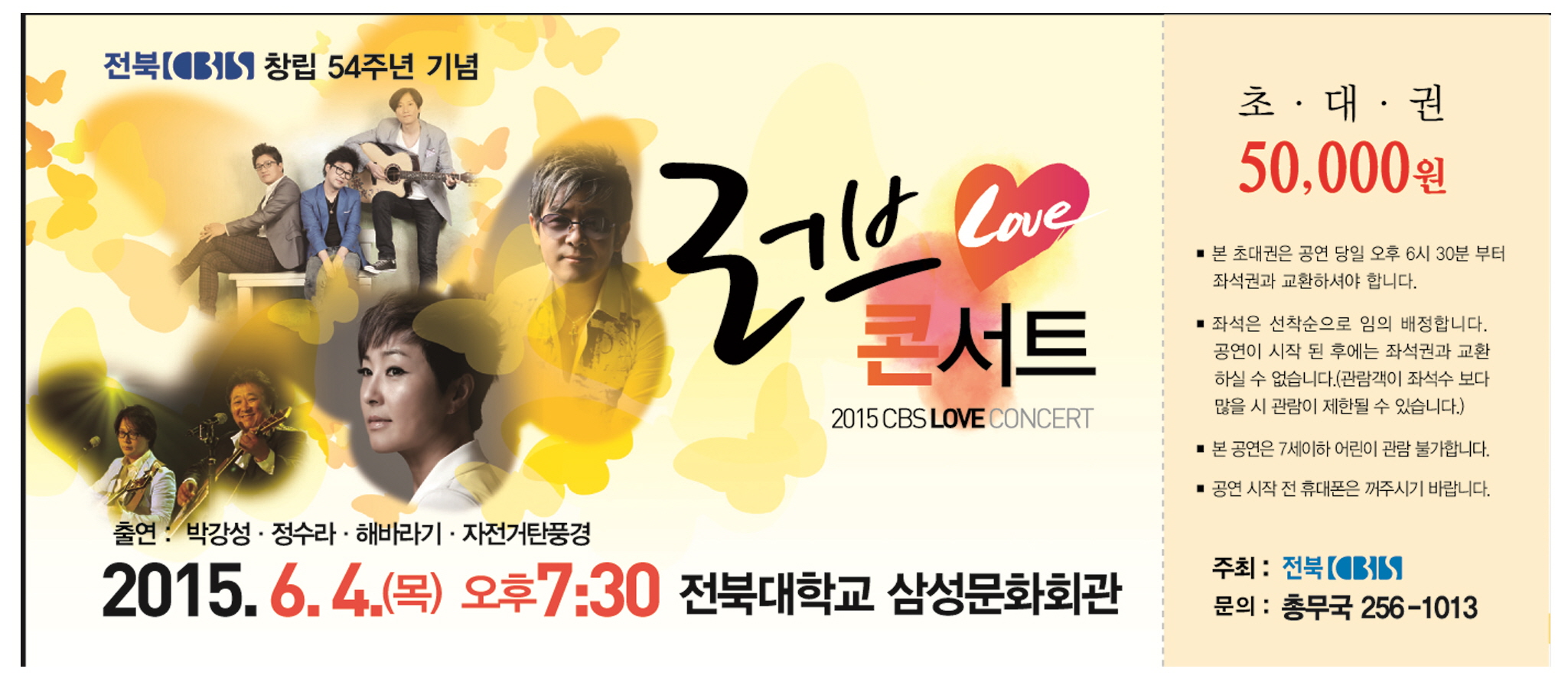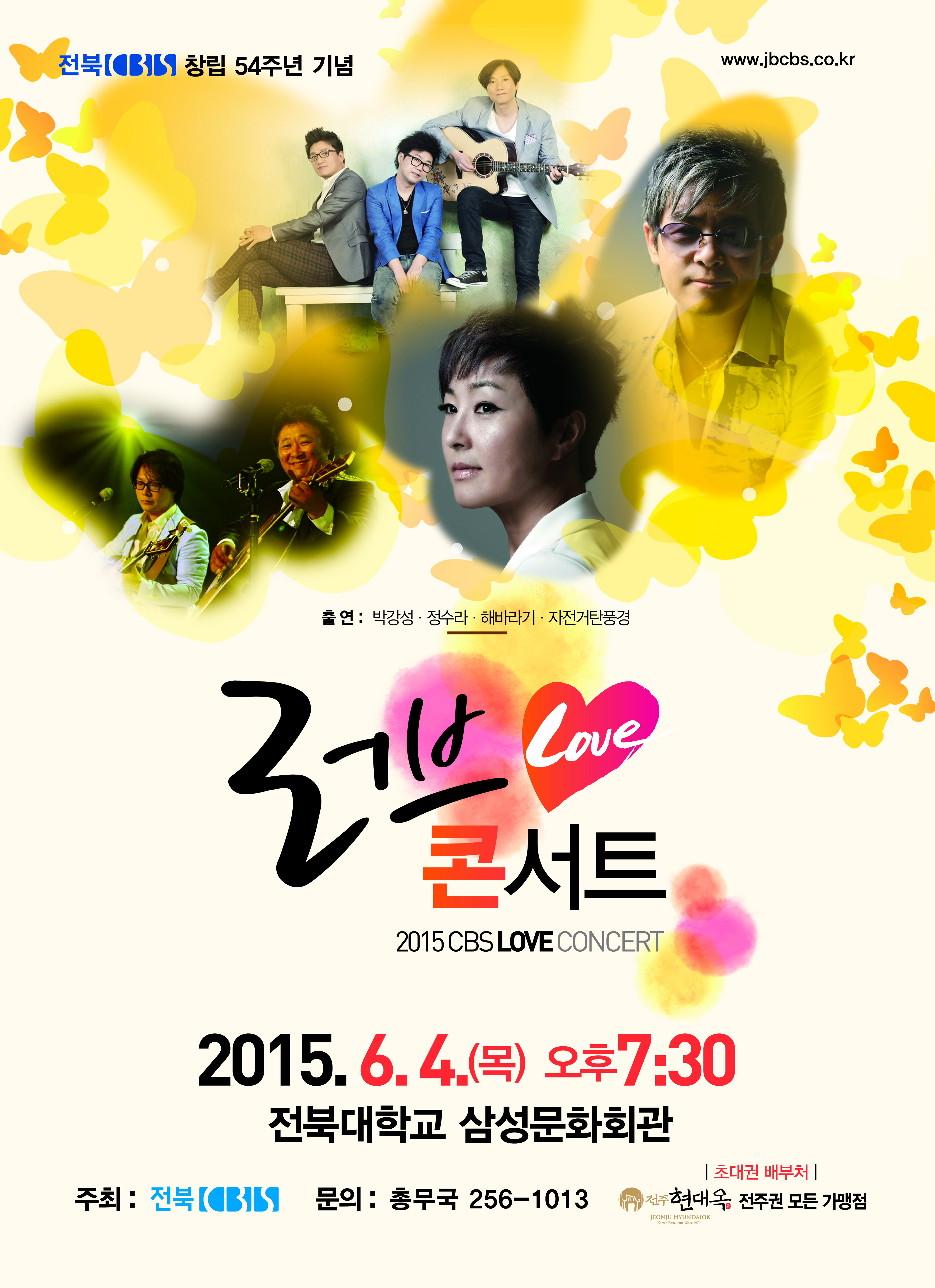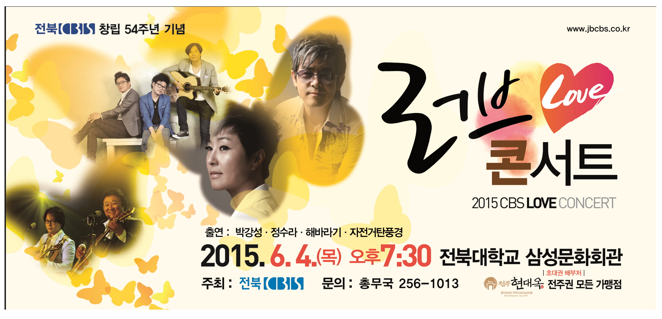2015년 6월 4일(목) 저녁 7:30 전북대학교 삼성문화회관에서 개최되는 '2015 CBS LOVE CONCERT"에