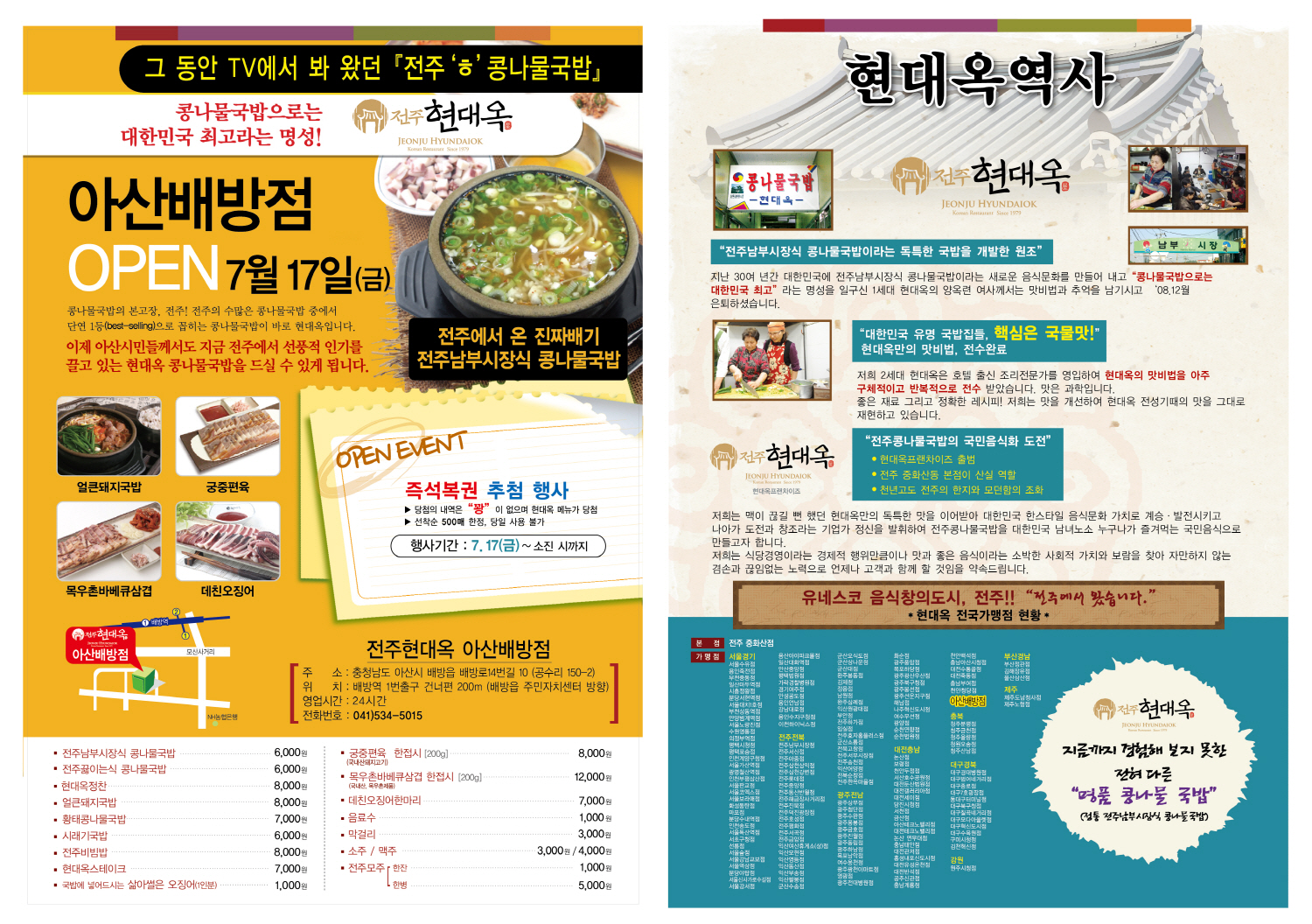 하셔서 현대옥을 차리셨다고 하셨습니다. 아산시민들 모두를 콩나물국밥매니아로 만들어 대박나시기