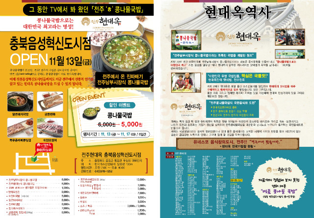 오늘 충북음성 소재 충북혁신도시에 현대옥이 오픈하였습니다. 음성혁신도시에는 중앙공무원연수원,