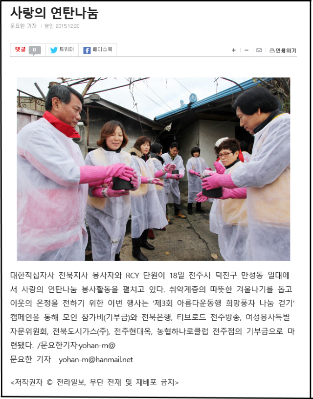 한편, 저희 현대옥에서는 그 간 대한적십자사/전북지사에서 추진하는 '희망풍차' '사랑의 연탄나눔' 등의