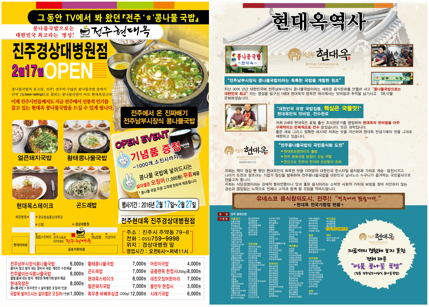 오늘 진주에 현대옥이 오픈하였습니다. 이제 진주시민들께서도 유네스코음식창의도시 전주에서 온