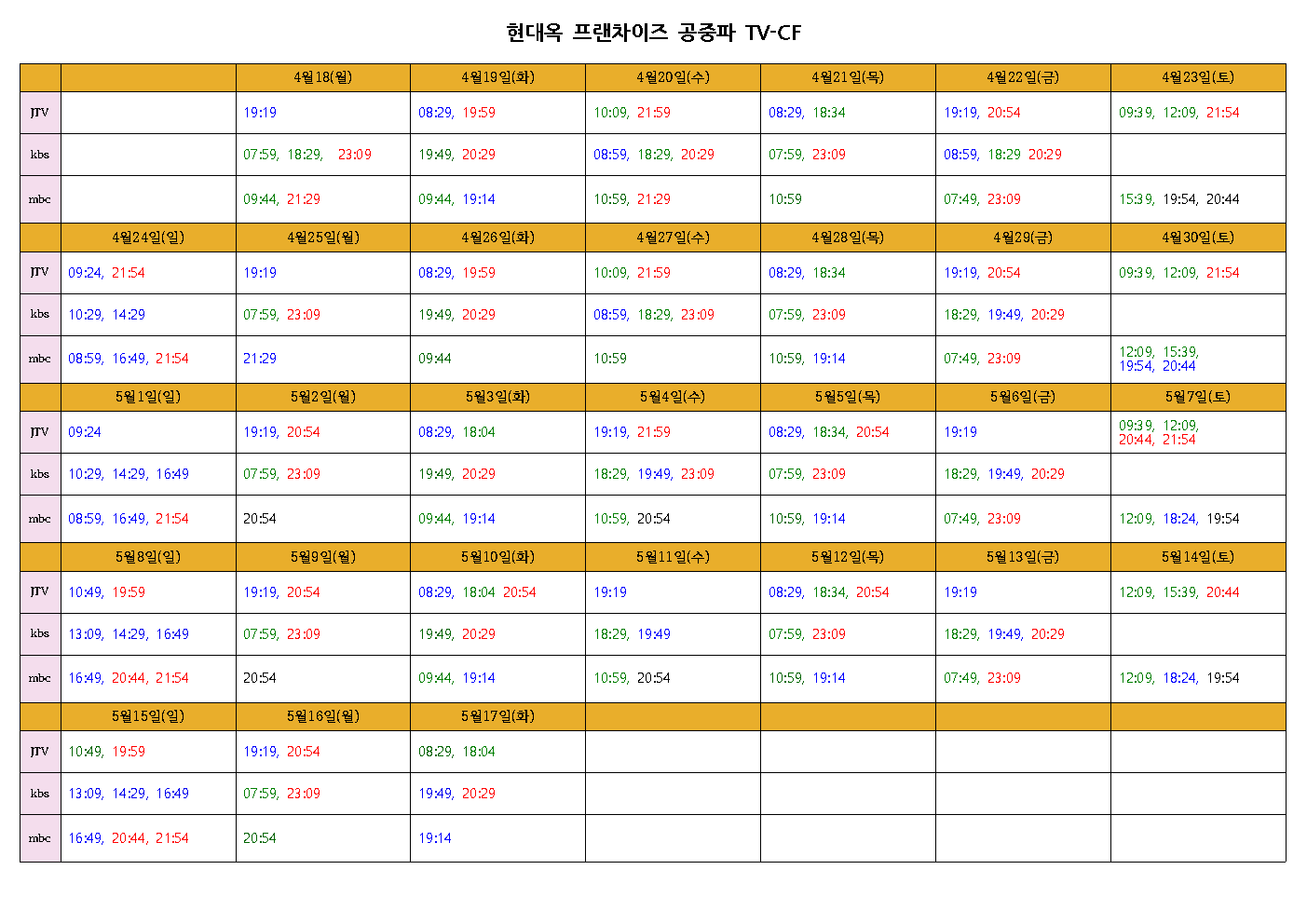 송출시간표와 CF동영상을 아래에 첨부합니다.