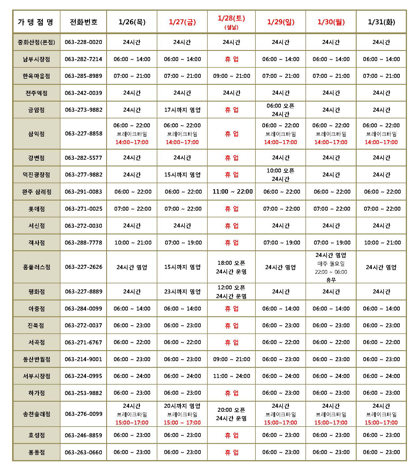 전주를 찾으시는 관광객들과 고향을 방문하신 고객님들께 설 연휴 기간