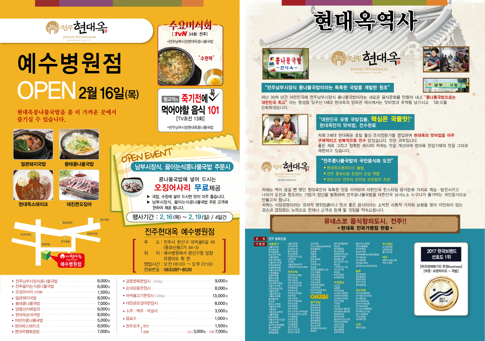 오늘 전주시완산구 소재 전주예수병원 인근에 현대옥이 오픈하였습니다.