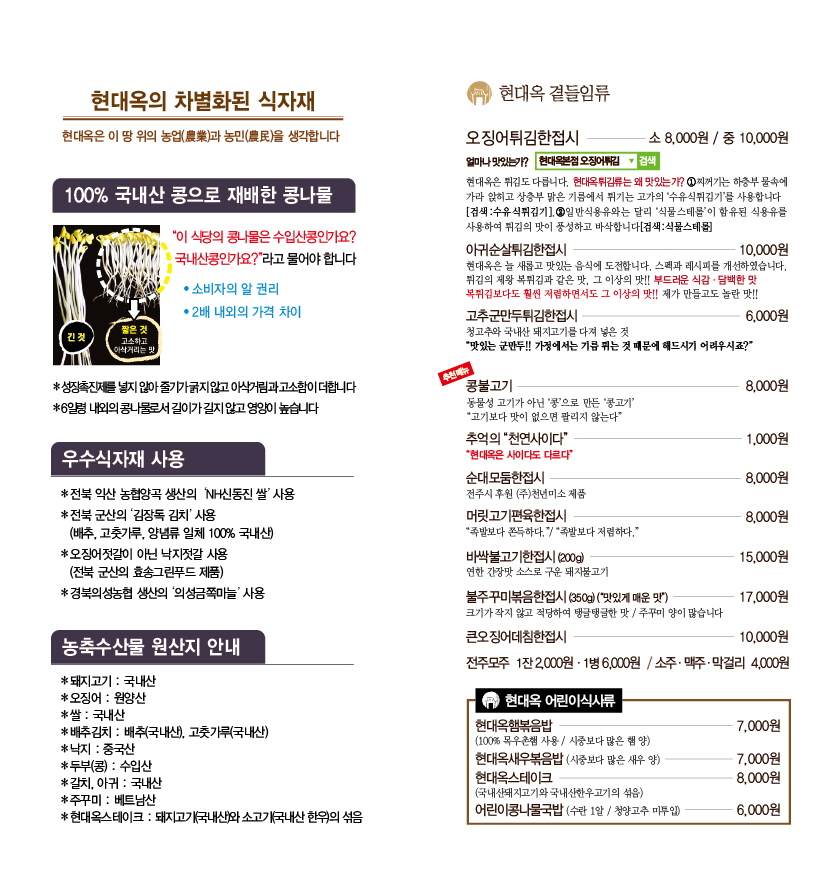 <현대옥본점메뉴북 삽지>