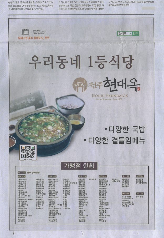 아래는 오늘자 새전북신문에 게제된 광고입니다.
