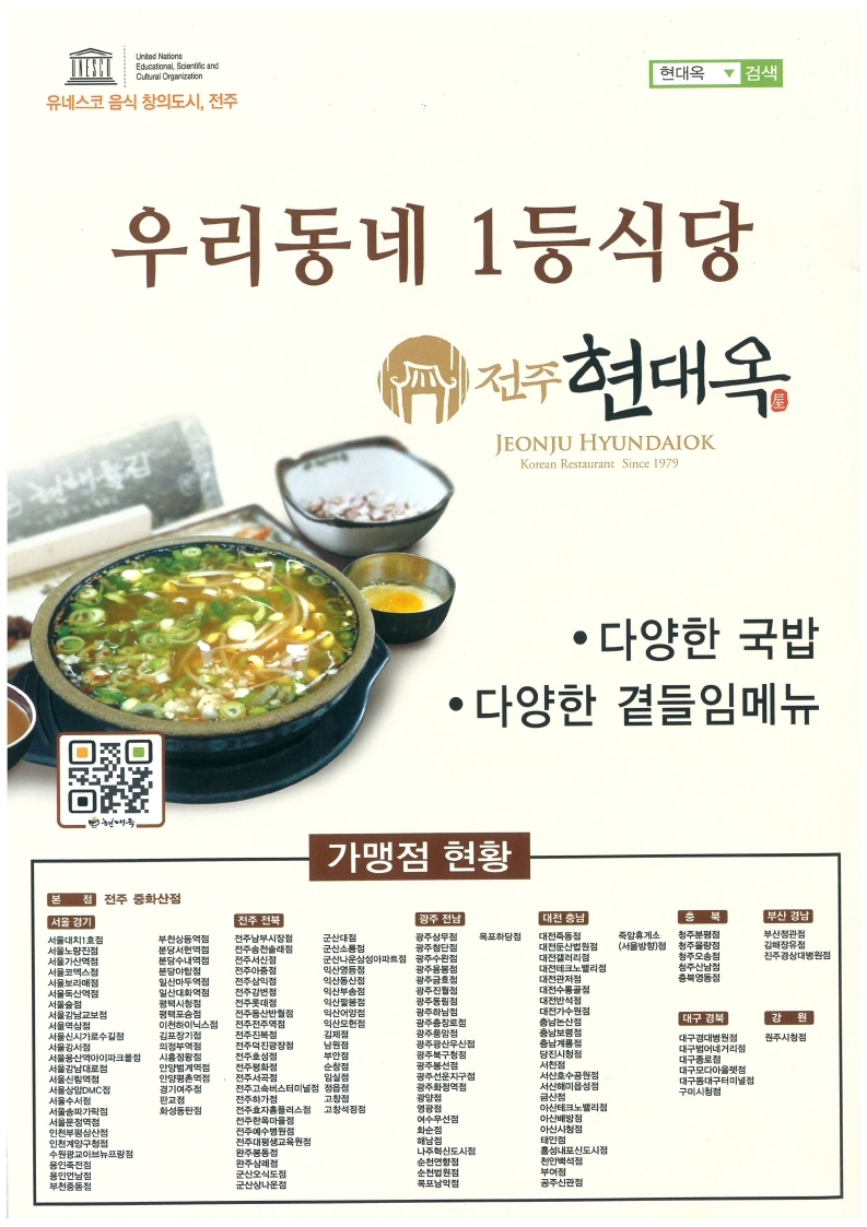 저희 현대옥은 전주전북 지역사회의 크고 작은 문화체육행사에 꾸준히 참여함으로써 현대옥에 대한 좋은 이미지를 쌓아 오면서 일선 가맹점들의 영업력을 지원코자 해왔으며, 앞으로도 그러할 것입니다.