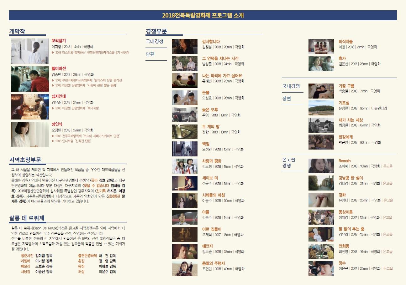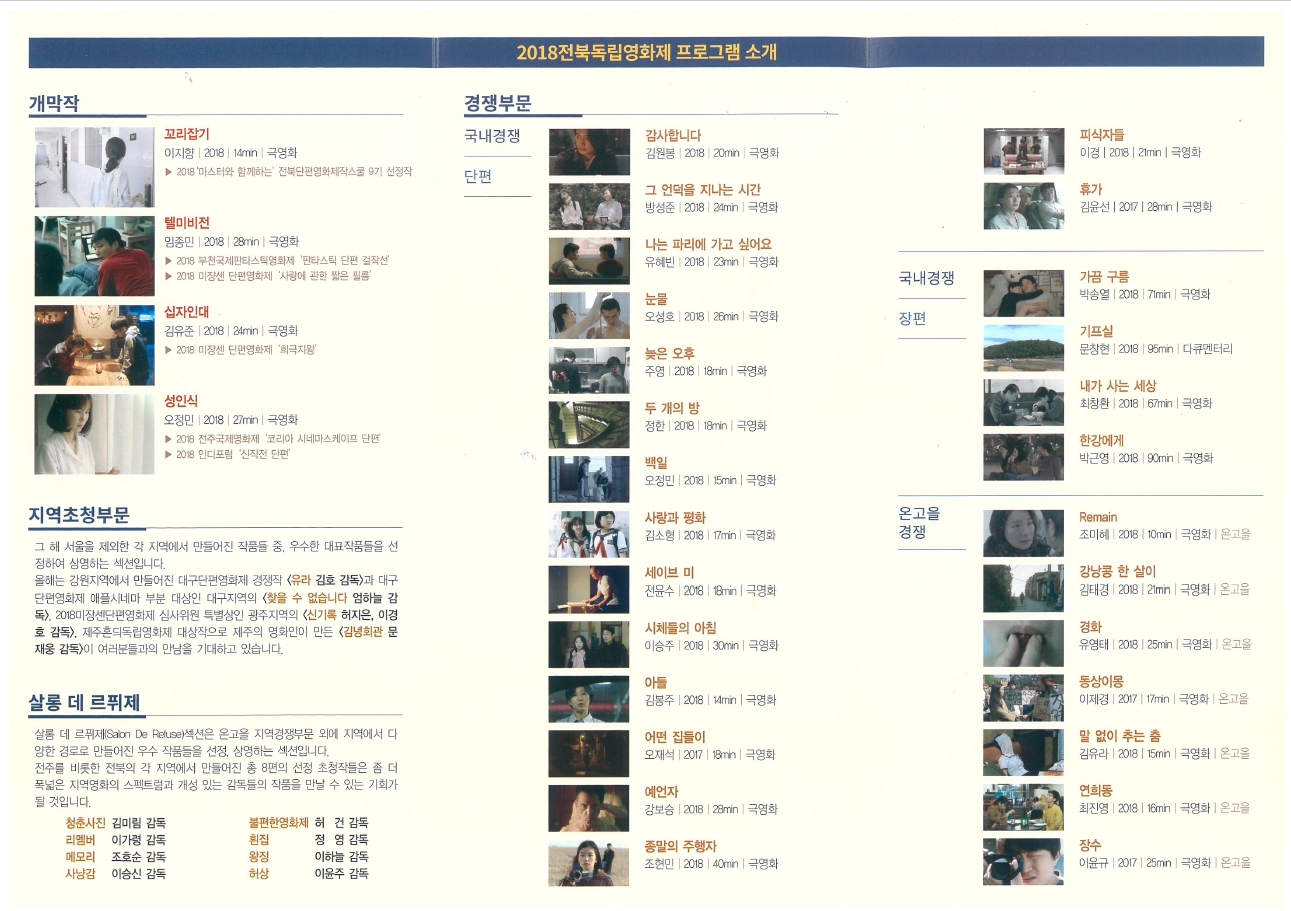 2018전북독립영화제 상영작 등 프로그램 브로셔 안내