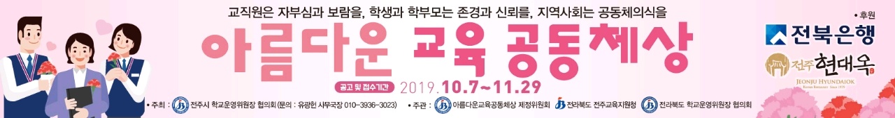 전주시 내 초등학교 중학교 고등학교 특수학교 등의 전체 선생님들을 대상으로 일정 심사기준에 따라 선정된 6명의 선생님께 수여하는 '아름다운 교육공동체상'에 저희 현대옥이 후원 참여합니다.