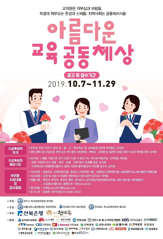 이 행사는 '전주시 학교운영위원장협의회'가 주최하고 현대옥과 전북은행이 후원 참여합니다. 특히 이 상에 대하여는 전주시 초중고 학부모 모두와 선생님들 모두가 한마음이 되어 범시민운동으로 진행될 수 있도록 하고자 하면서 주요 언론사에서도 보도와 인터뷰 등을 통하여 적극 참여하기로 하였습니다.