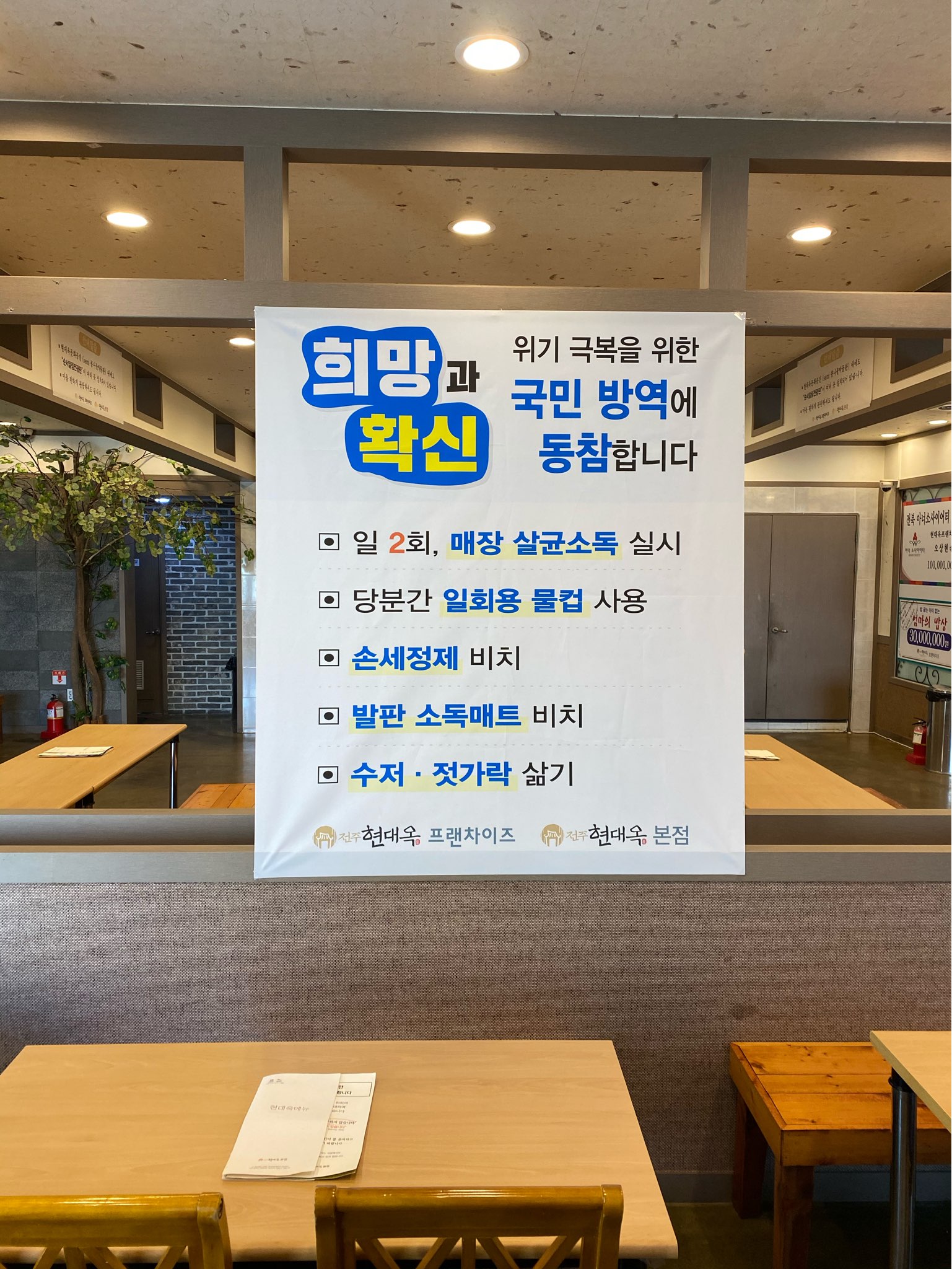 현대옥 모든 가맹점에 소독약과 분무기 등 방역물품 무상 공급