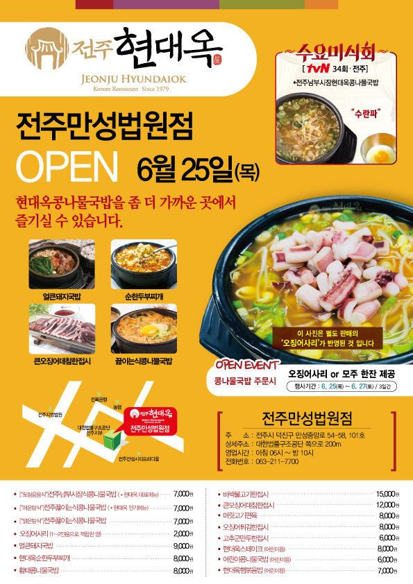 오늘 전주시 덕진구 만성지구의 전주법조타운에 현대옥이 오픈하였습니다.