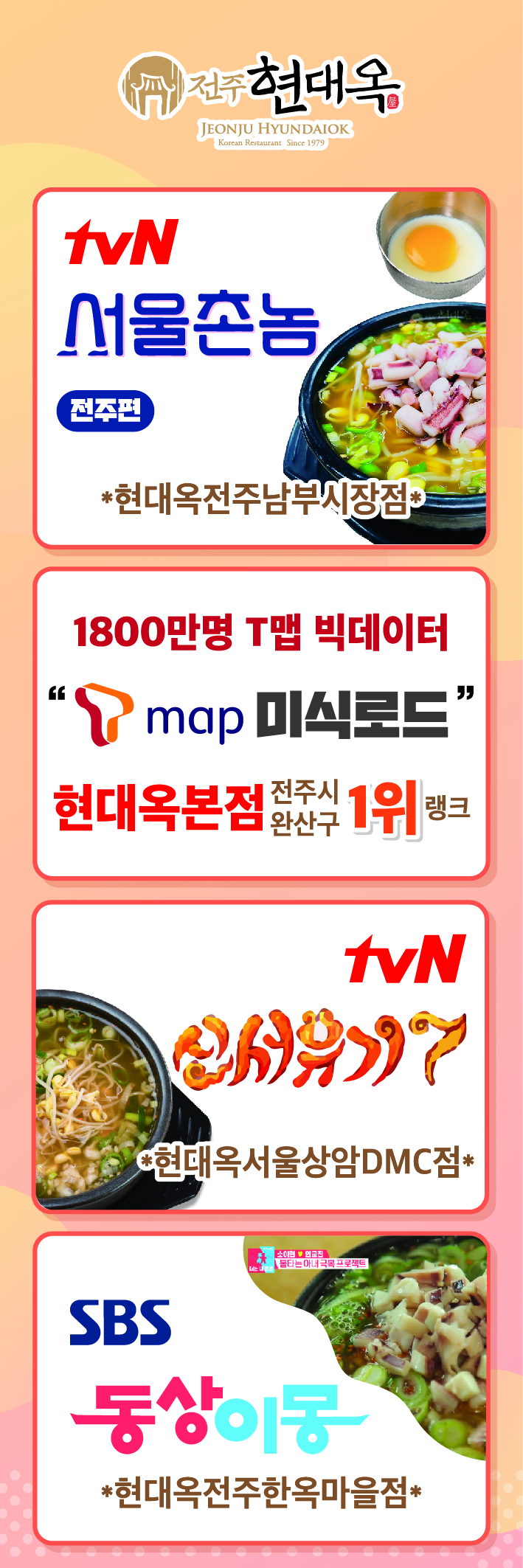 tvN 서울촌놈 전주편 등, 현대옥홍보 X-배너 가맹점 공급 계획