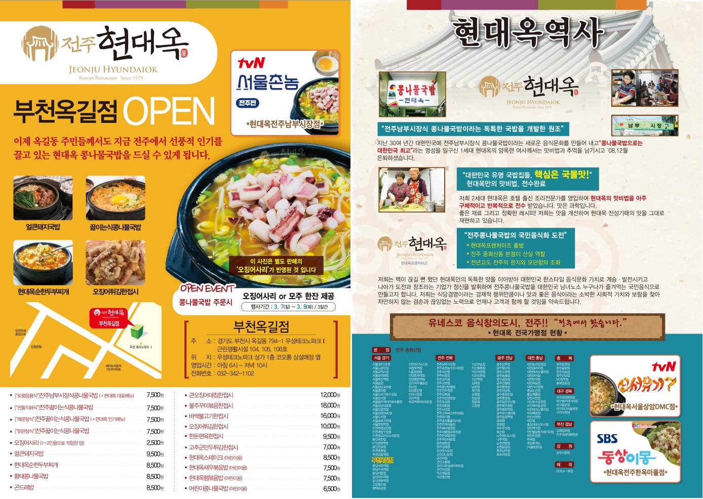 이제 옥길지구 주민들께서도 가까운 곳에서 현대옥을 만나실 수 있게 되었습니다. 옥길지구에서 '우리동네 1등식당 현대옥'으로 자리 잡도록 맛과 친절위생에 최선을 다하겠습니다.