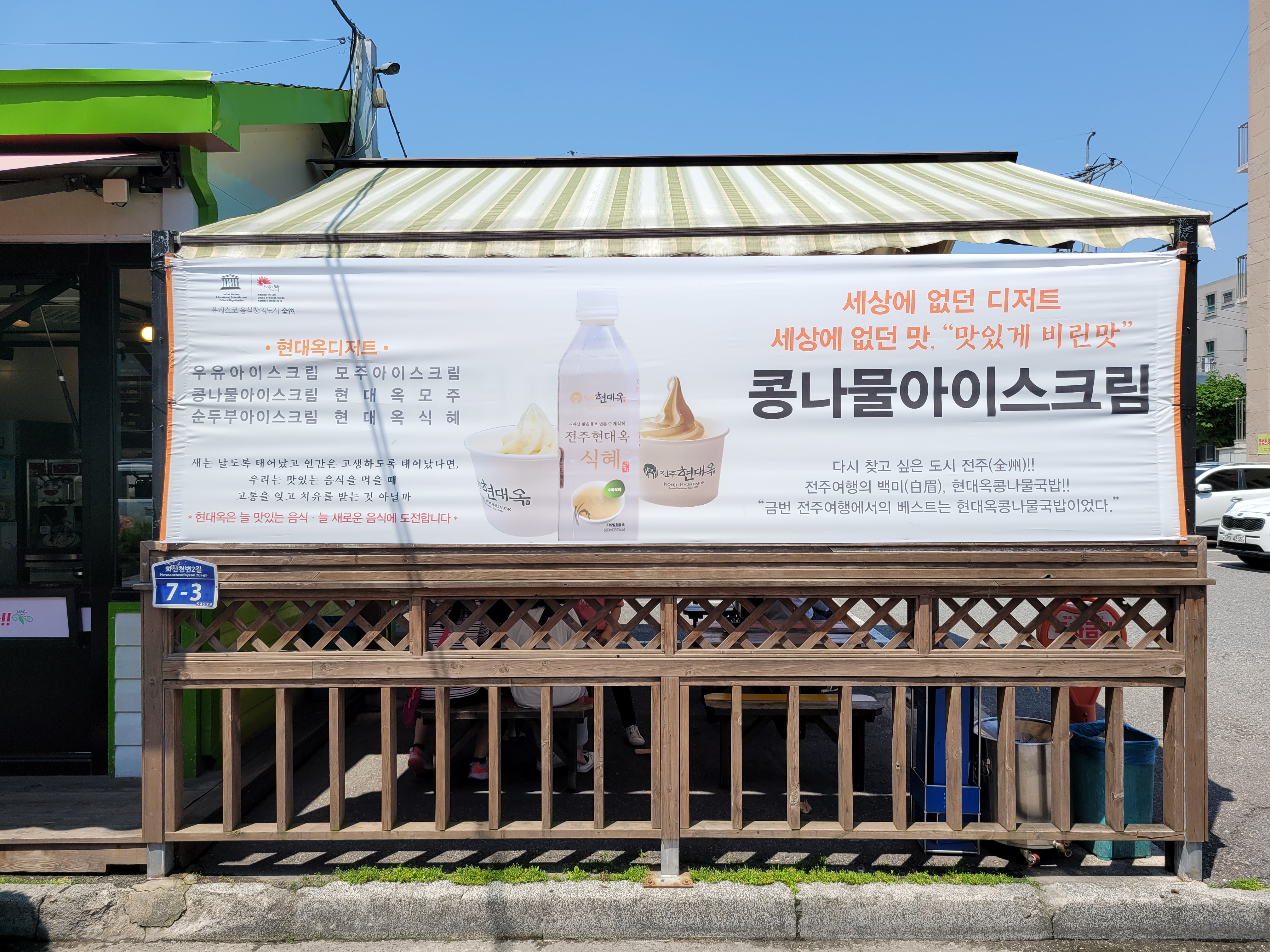 지난 4월 14일부터 전주본점 앞 카페에서 판매 개시한 '콩나물젤라또'에 대하여 한 달 여간의 고객 반응과 제안 등을 반영하여 '맛있게 비린맛'과 '비리지 않은 맛'의 두 가지로 구분하여 판매함을 알립니다. 두 가지 맛으로 구분 판매는 5월 13일 오늘 이 시각 현재 진행 중입니다. 당초는 한가지 맛으로서 '맛있게 비린맛'을 내고 있었는데, 한 달간의 판매 결과 비린맛에 대하여 호불호가 거의 절반으로 갈렸습니다. 이에 가맹본부에서 "세상에 없던 디저트, 콩나물젤라또"를 반드시 성공시켜 놓고야 말겠다는 일념으로 불호를 표현하시는 고객들을 결코 놓고 갈 수는 없다고 결정하였습니다. 이에 따라 비리지 않는 구수한 맛의 젤라또를 별도로 추가 개발하였고, 최근 5일 동안 비린맛과 비리지 않은 맛의 두 가지를 병행 판매하였습니다. 그 결과 두 가지 맛 모두가 각기 상품성을 갖추었다고 판단하면서 두 가지 모두를 상품화하기에 이르렀습니다. 고객들께서는 두 가지 맛 중 자신이 좋아하는 맛을 선택할 수 있어 좋고, 또한 식도락 고객들께서는 이맛저맛 모두를 구입하여 드시는 왕성한 호기심을 보일 것으로 기대합니다. 한편, 그간 상품명을 '젤라또'라고 하였었는데, 익숙함과 친근감 차원에서 '아이스크림'으로 변경하였습니다. 콩나물젤라또 뿐만 아니라 다른 젤라또류 모두 아이스크림으로 변경합니다. 건강하게 비린맛, 맛있게 비린맛, 신선한 야채맛 등으로 표현되는 '비린맛'이 소비자 고객들께 서서히 자리잡힐 것으로 생각합니다. 한편, 그간 수 년 동안 전주본점 앞 카페의 영업시간이 오전 07시부터 밤 9시까지였는데, 콩나물아이스크림 등 디저트류의 성공을 견인하는 하나의 대책으로서 카페 영업시간을 종전 시간의 앞뒤로 각 1시간씩 확장합니다. 한 달 정도의 경과를 지켜 본 뒤, 24시간 운영 체제를 적극 검토하고자 합니다. 아래에 본점 앞 카페에 부착된 새로운 현수막과 실내 메뉴판을 첨부해 놓습니다.
