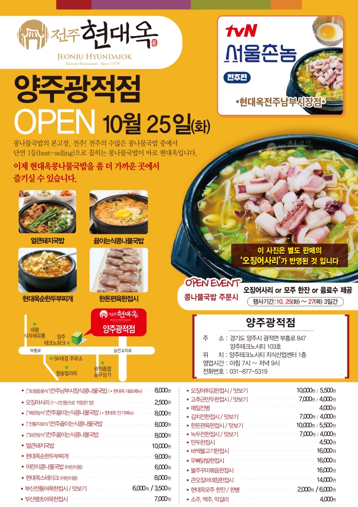 인근의 직장인들과 주민들께서도 이제 "전주에서 온 전주콩나물국밥, 현대옥"을 가까운 곳에서 즐기실 수 있게 됐습니다.
