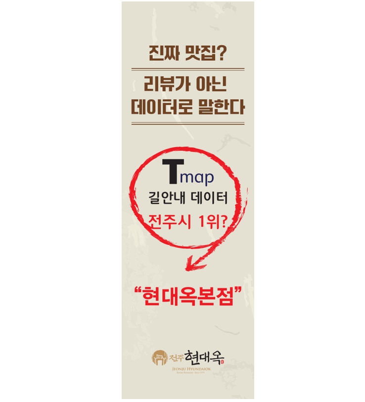 현대옥본점 Tmap 길안내 데이터 전주시 1위, 전국 가맹점 X-배너 비치