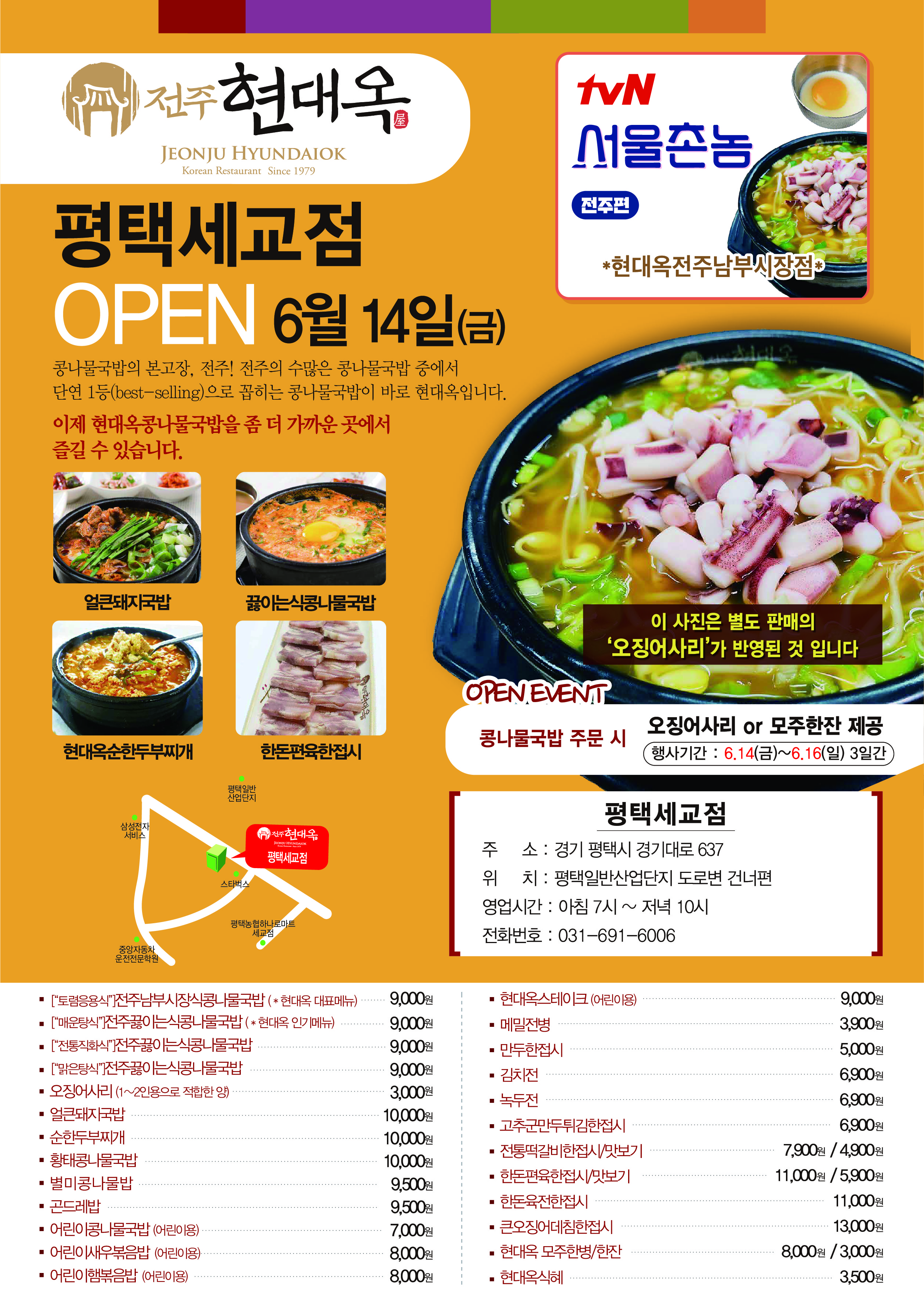오늘자 경기도 평택시 세교동에 현대옥 평택세교점이 오픈하였습니다.