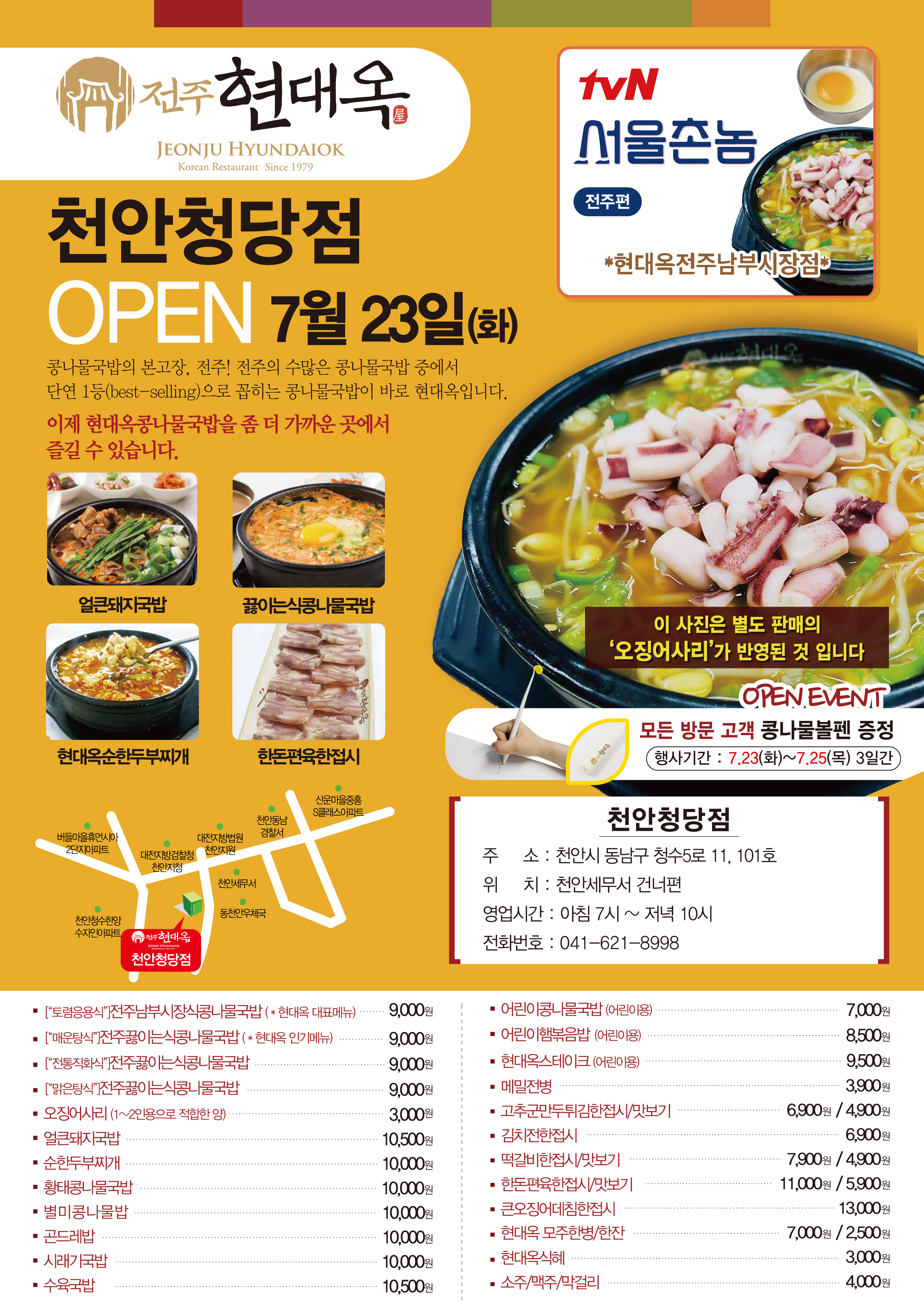 오늘자 천안시 동남구 청당동 천안법조타운 인근에 현대옥 천안청당점이 오픈하였습니다.
