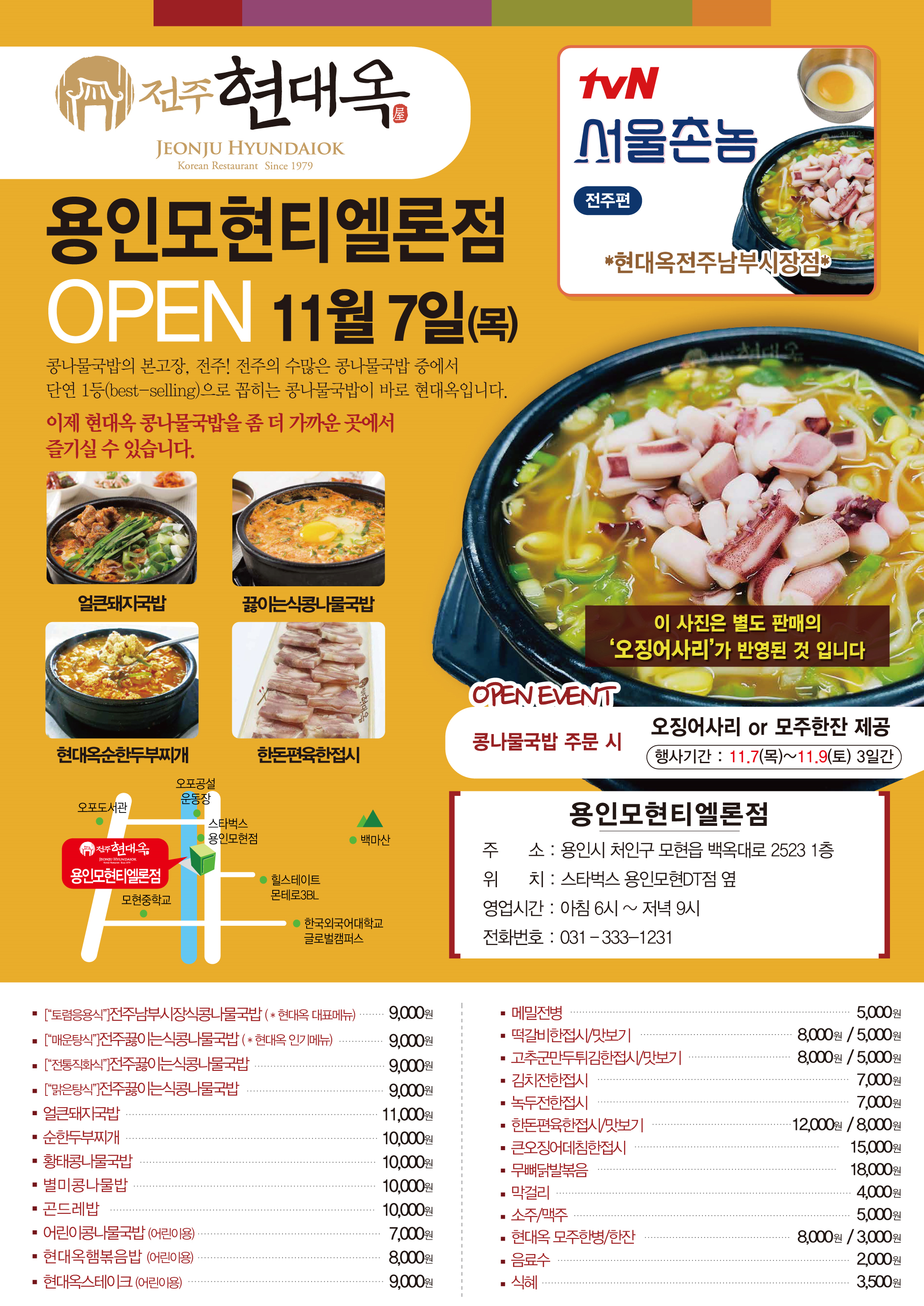 인근의 직장인들과 주민들께서도 이제 "전주에서 온 진짜배기, 전주현대옥콩나물국밥"을 가까운 곳에서 즐기실 수 있게 됐습니다.