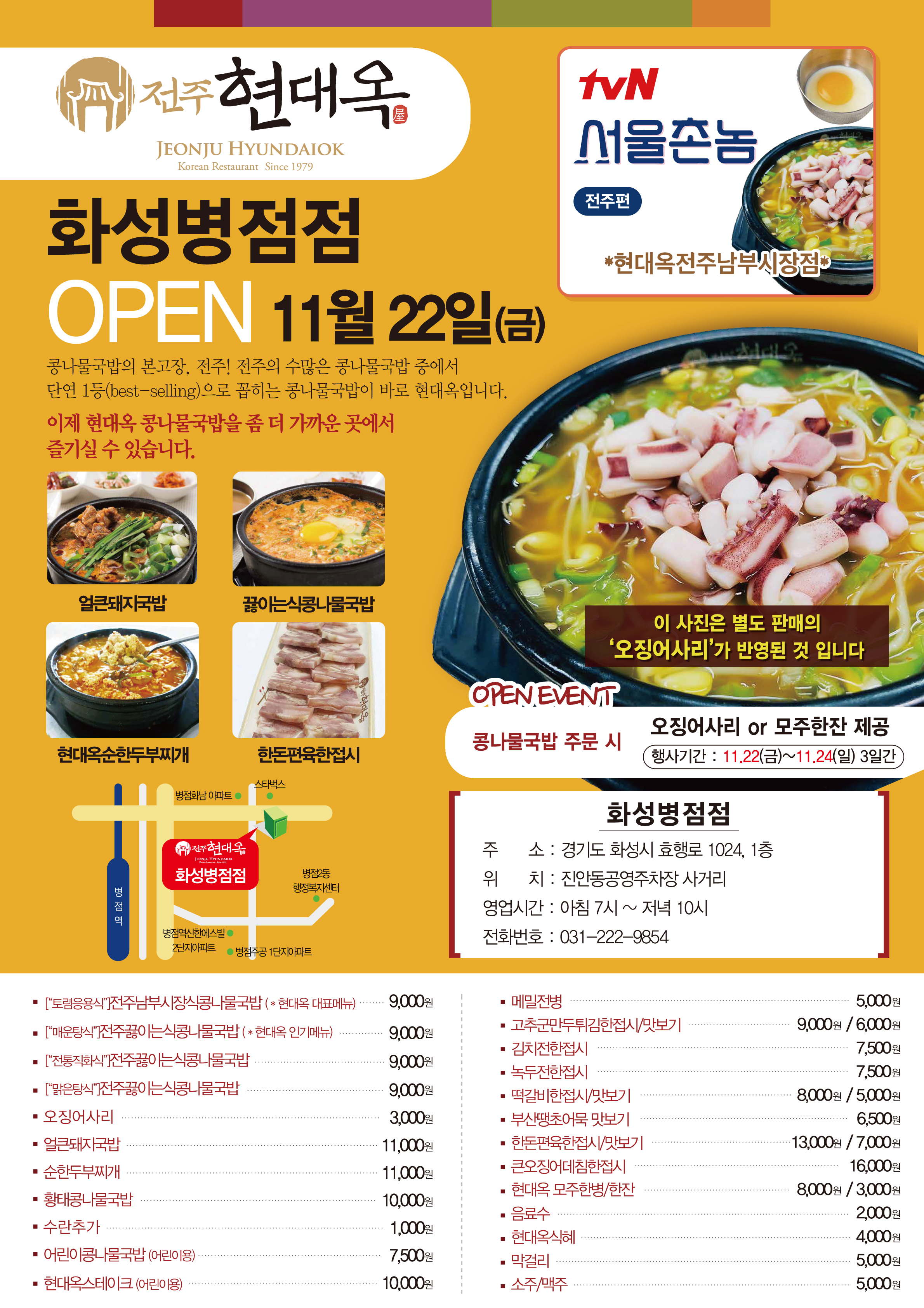인근의 직장인들과 주민들께서도 "전주에서 온 전주콩나물국밥, 현대옥"을 가까운 곳에서 즐기실 수 있게 됐습니다. 맛, 위생, 친절에 최선을 다하여 '우리동네 1등 식당, 현대옥' 으로 보답해 드리겠습니다.