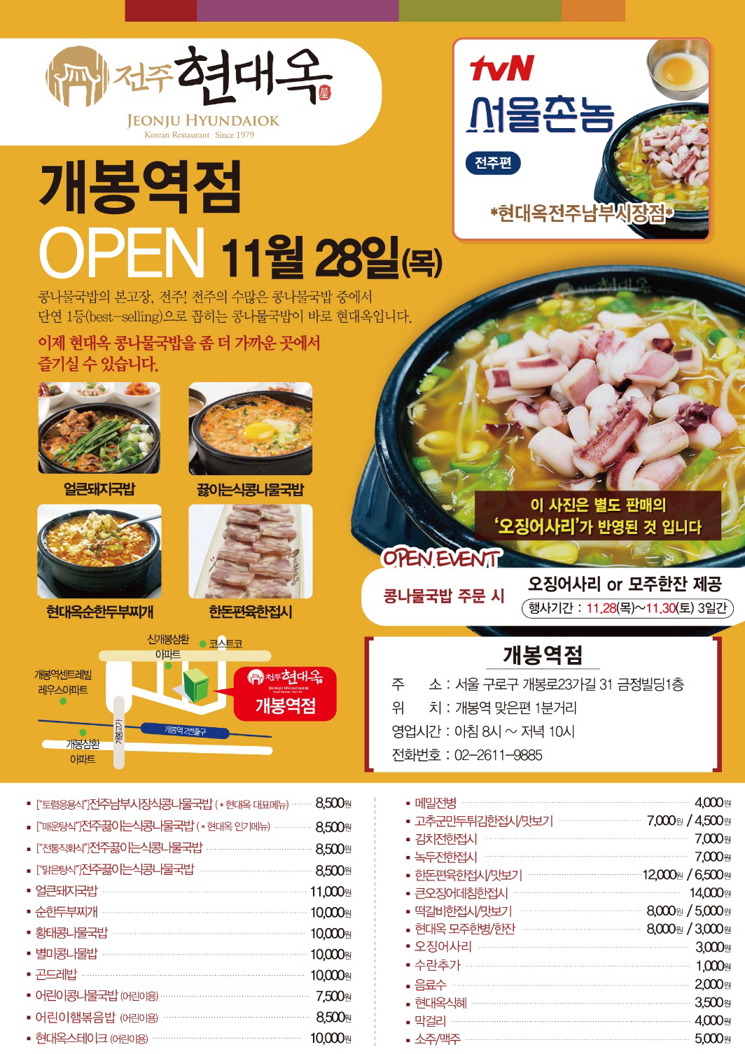 오늘자 서울특별시 구로구 개봉역 인근에 현대옥 서울개봉역점이 오픈하였습니다.