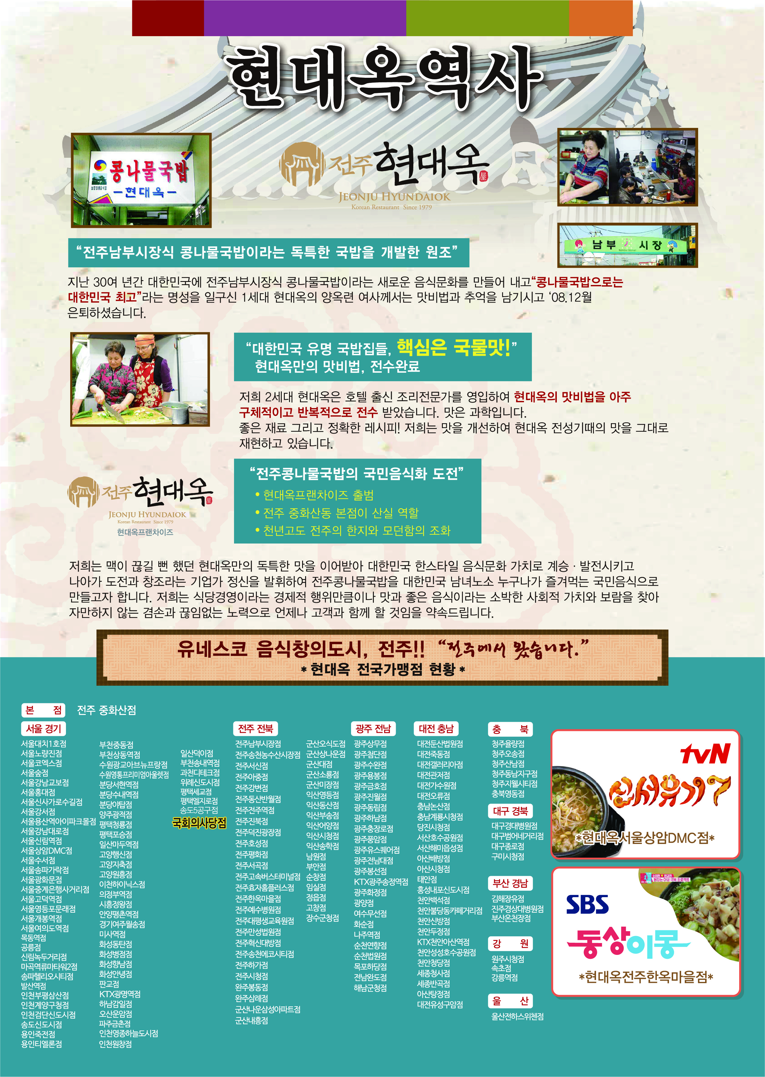 인근의 직장인들과 주민들께서도 "전주에서 온 전주콩나물국밥, 현대옥"을 가까운 곳에서 즐기실 수 있게 됐습니다. 맛, 위생, 친절에 최선을 다하여 '우리동네 1등 식당, 현대옥" 으로 보답해 드리겠습니다.