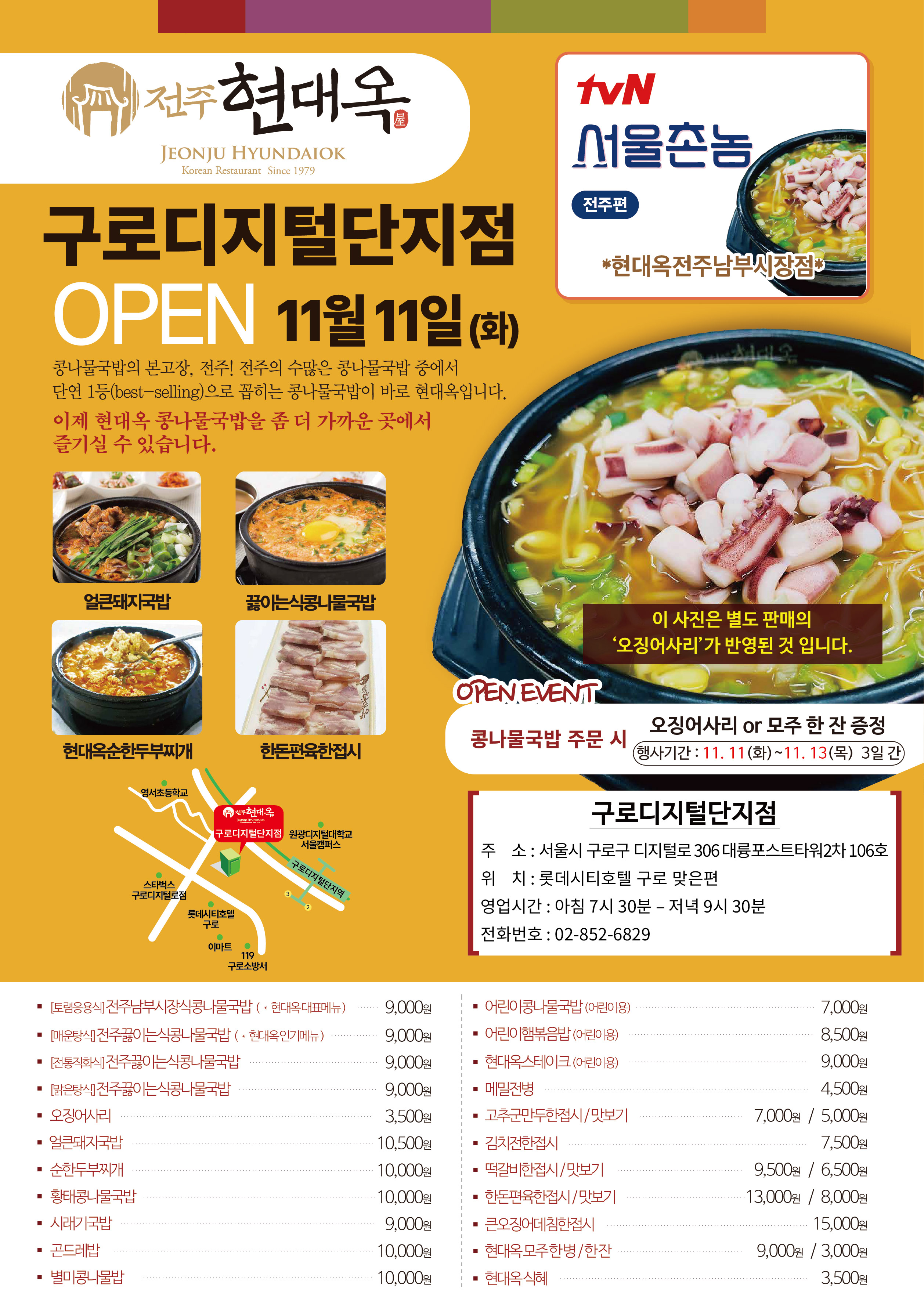 오늘자 서울 구로구 구로디지털단지역 인근에 현대옥 구로디지털단지점이 오픈하였습니다.