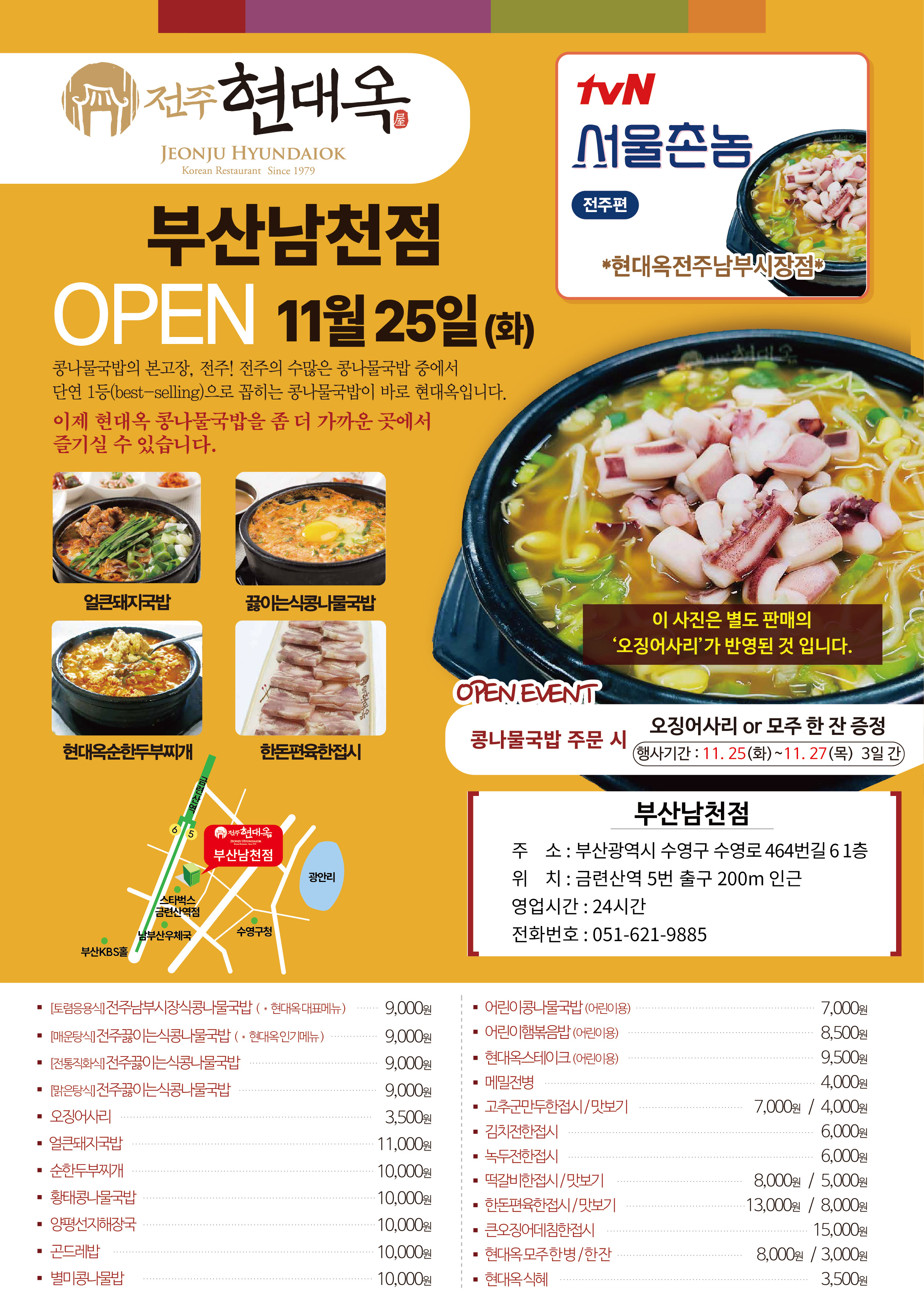 오늘자 부산광역시 수영구 남천동에 현대옥 부산남천점이 오픈하였습니다.