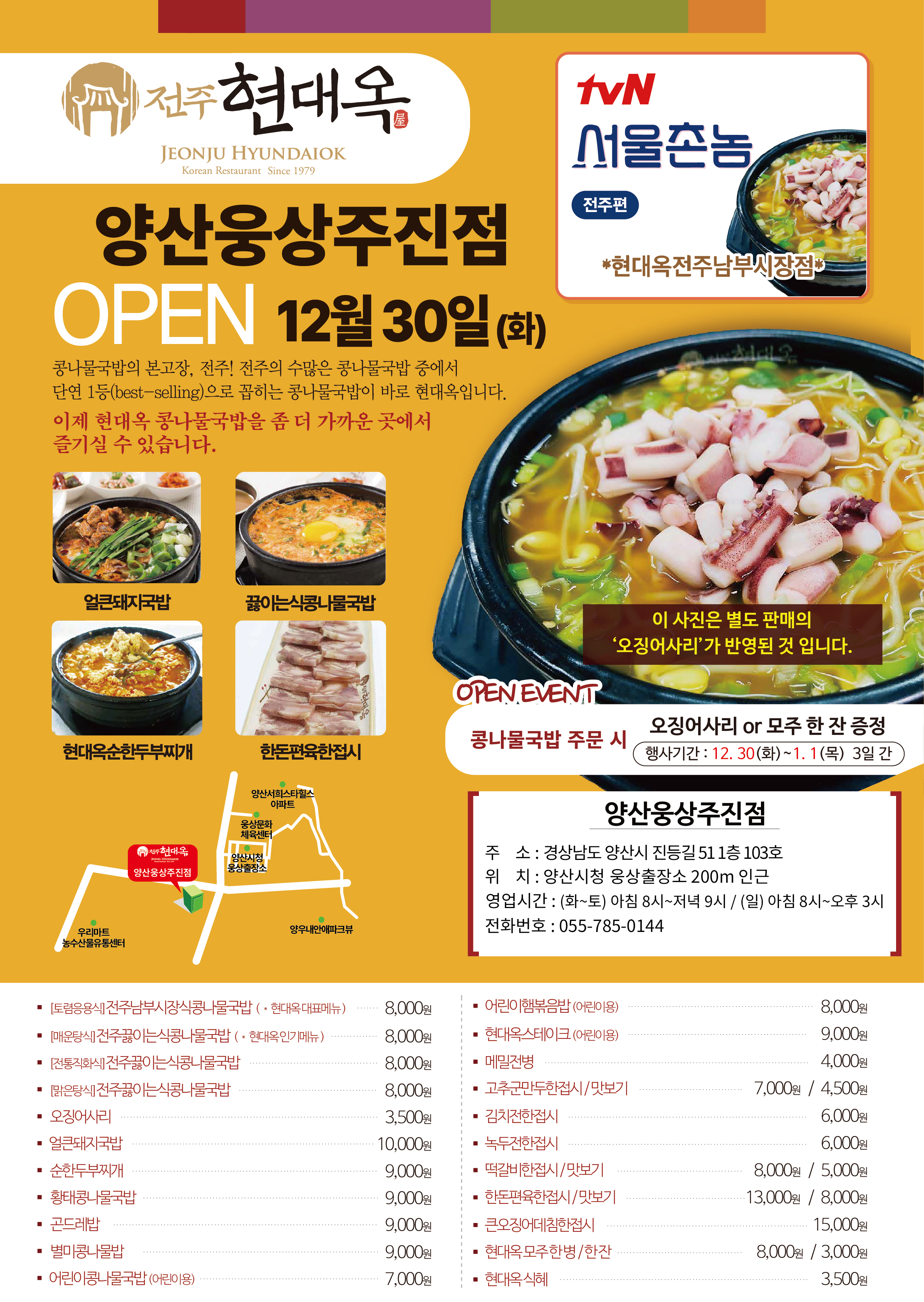 오늘자 경상남도 양산시 주진동에 현대옥 양산웅상주진점이 오픈하였습니다.