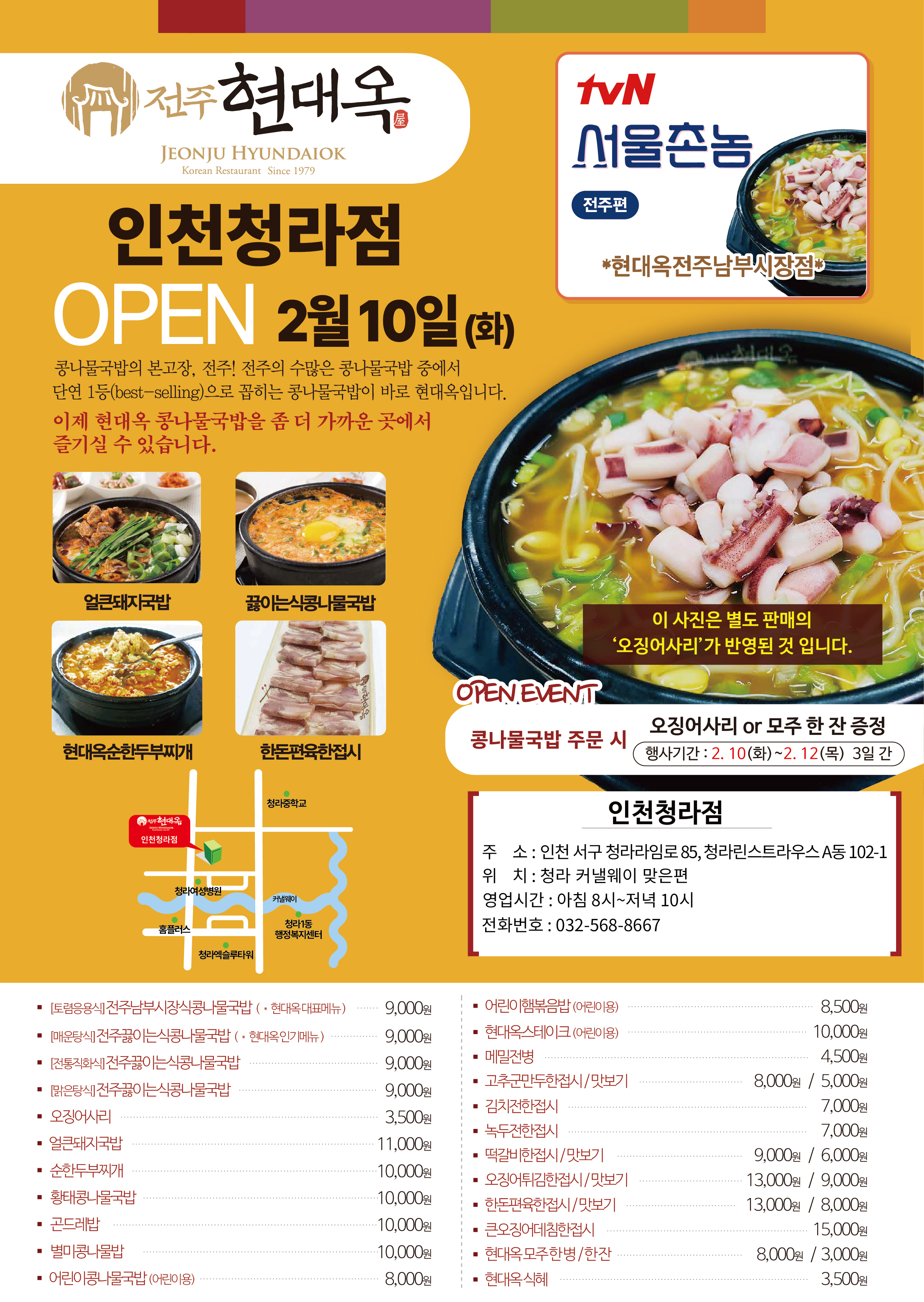 오늘자 인천 서구 청라동에 현대옥 인천청라점이 오픈하였습니다.