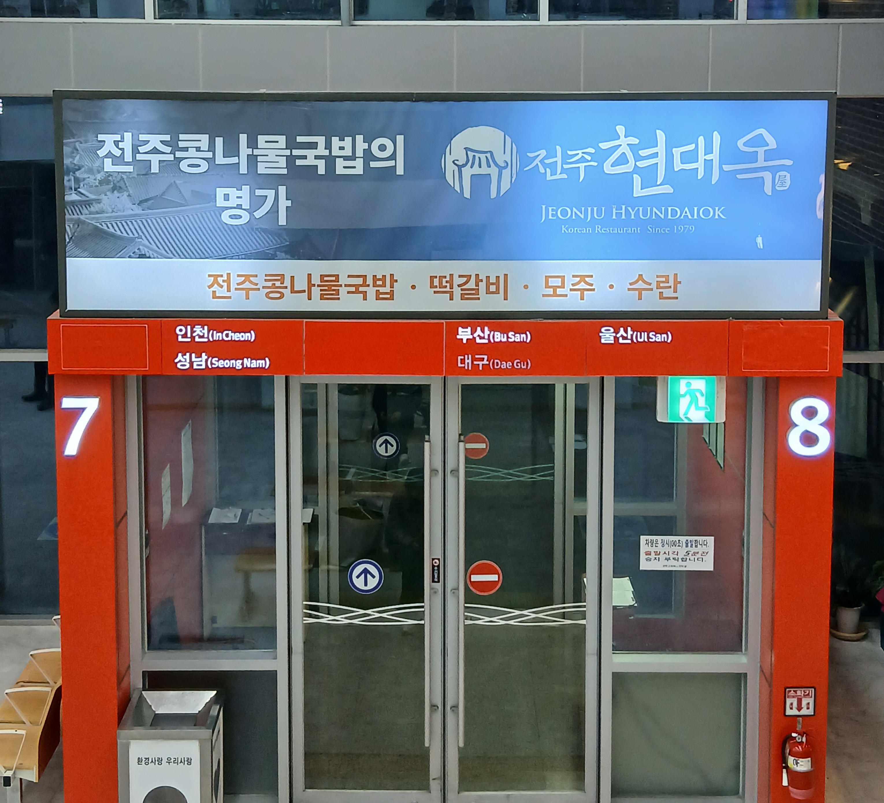 전주고속버스터미널 내 전광판, 현대옥 광고 안내